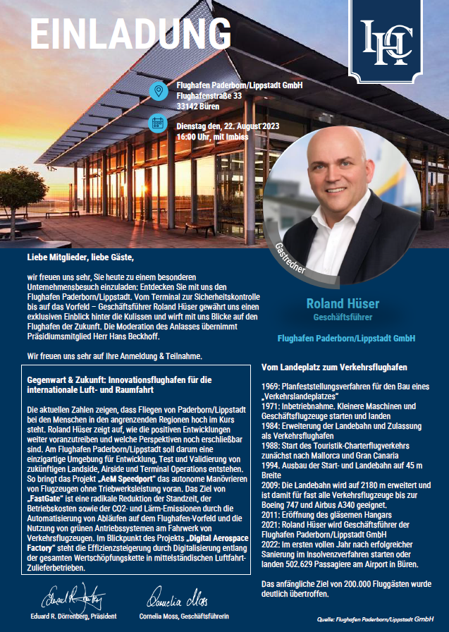 Unternehmensbesuch Flughafen Paderborn/Lippstadt GmbH – Gegenwart & Zukunft: Innovationsflughafen für die internationale Luft- und Raumfahrt