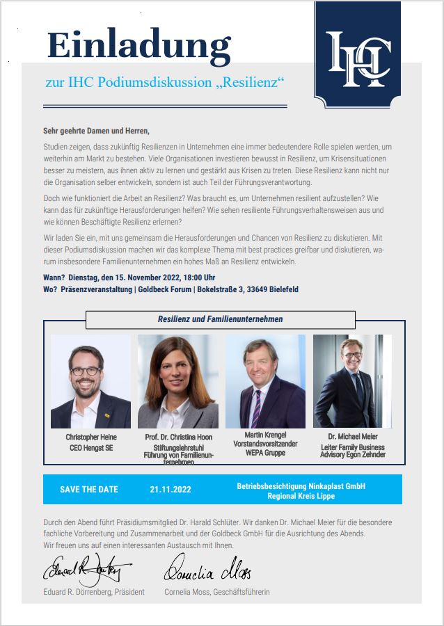 IHC Podiumsdiskussion: Resilienz und Familienunternehmen