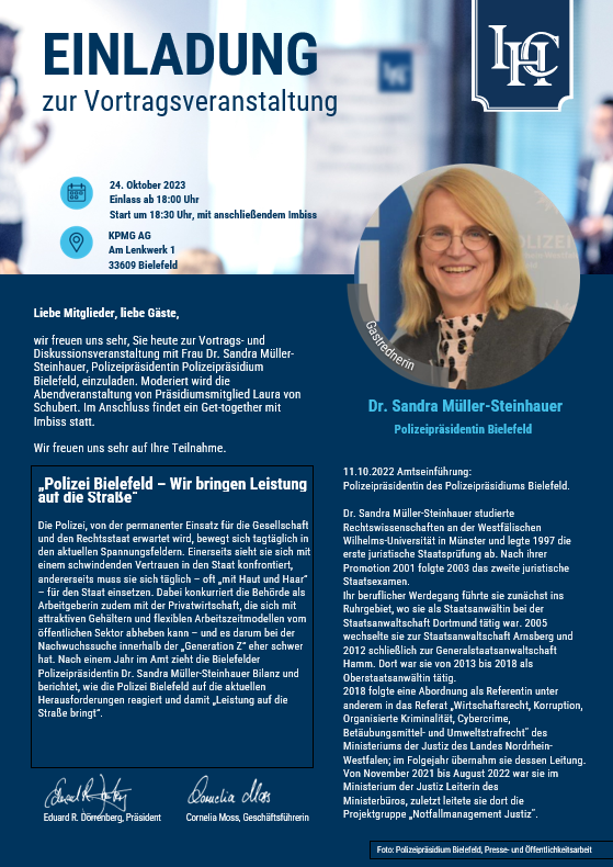 IHC Vortrags- und Diskussionsveranstaltung mit Dr. Sandra Müller-Steinhauer, Polizeipräsidentin Bielefeld