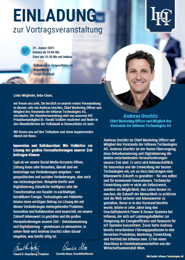 IHC Vortragsveranstaltung mit Andreas Urschitz, Vorstand der Infineon Technologies AG und Chief Marketing Officer