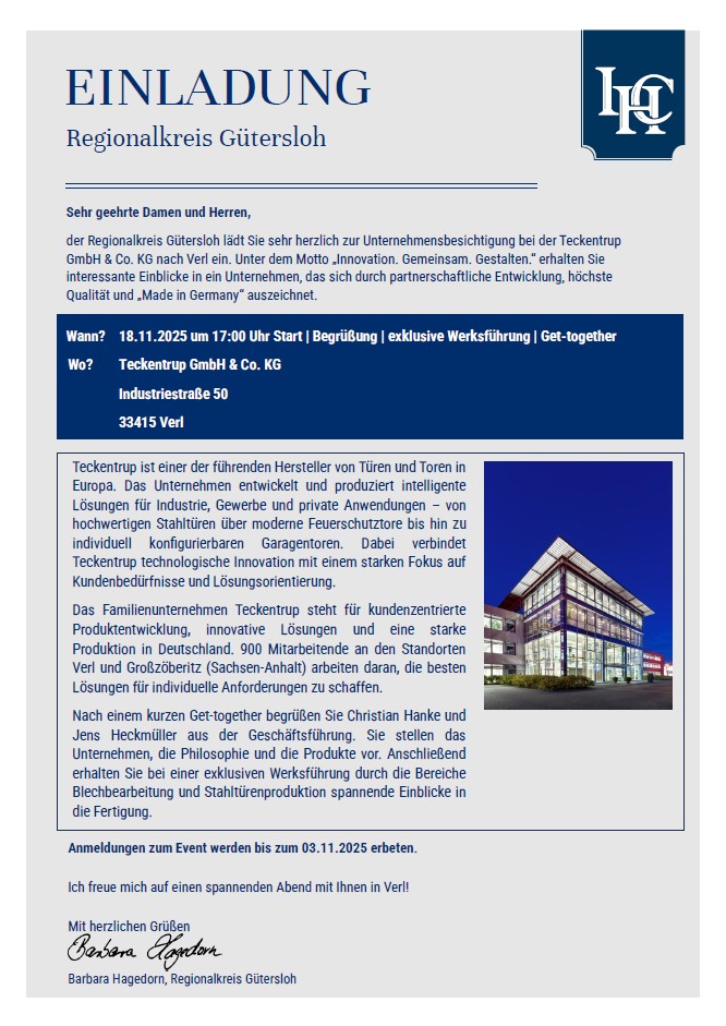 Regionalkreis Gütersloh – Unternehmensbesichtigung Teckentrup GmbH & Co. KG