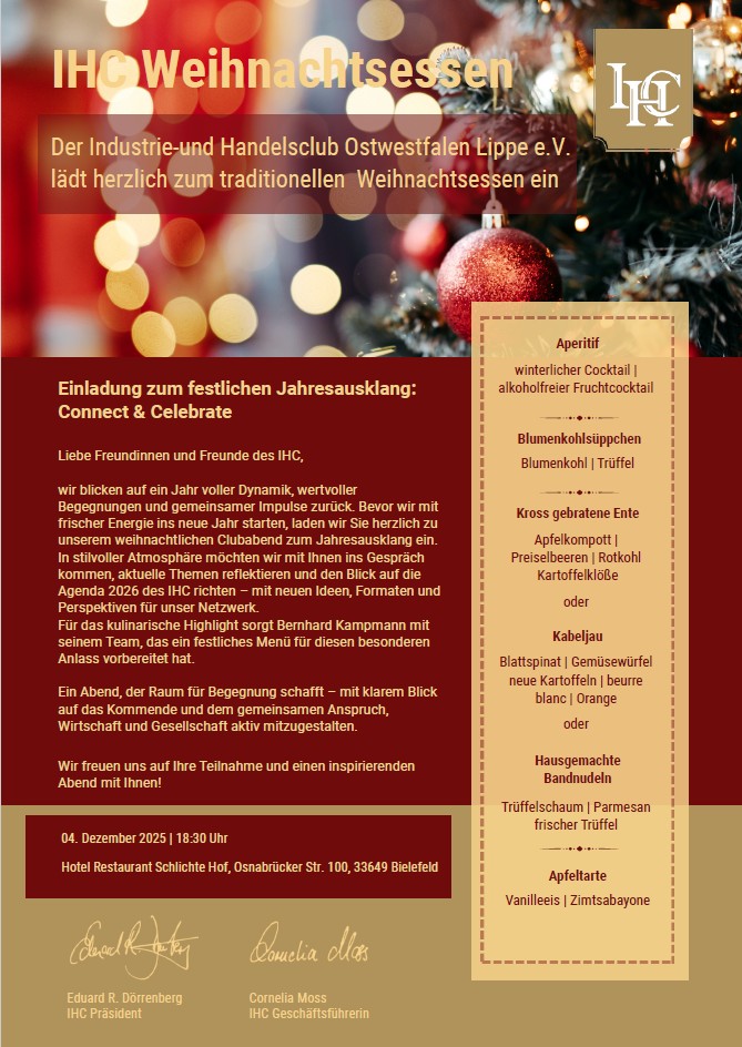 Weihnachtlicher Clubabend im Hotel Restaurant Schlichte Hof am 04.12.2025