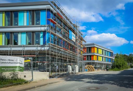 Bielefeld. Das bunte Kinderzentrum des Evangelischen Klinikums Bethel (EvKB) wächst – allen Widrigkeiten zum Trotz. Glücklicherweise seien fast alle Verträge vor der Pandemie und vor dem Ukraine-Krieg abgeschlossen worden, so EvKB-Architekt Jürgen Käller. Folge: Wie so vieles in dieser Zeit wird es teurer und auch später fertig, aber so, dass es Bethel nicht schreckt. Aus 80 Millionen, so Rainer Norden als Chef des Aufsichtsrates, würden jetzt 100 Millionen, darin enthalten seien aber auch 10 Millionen für das Außengelände, die vorher in anderen Töpfen verbucht worden seien.