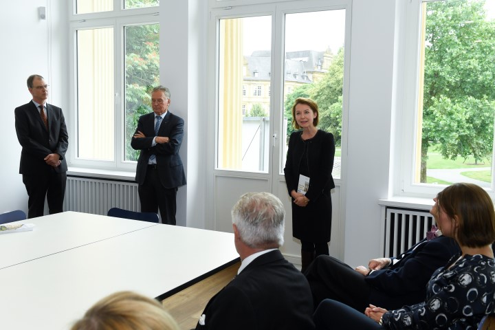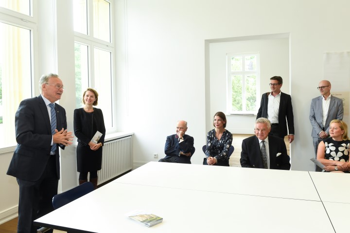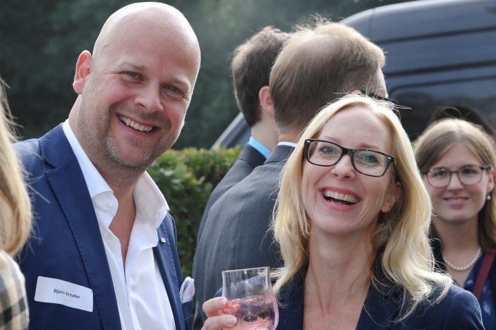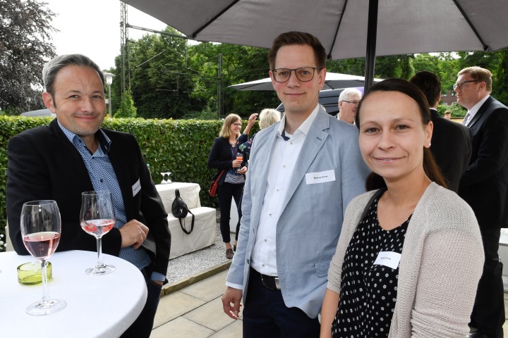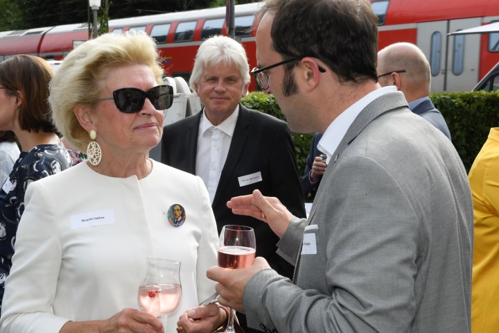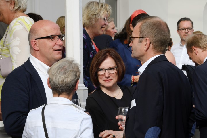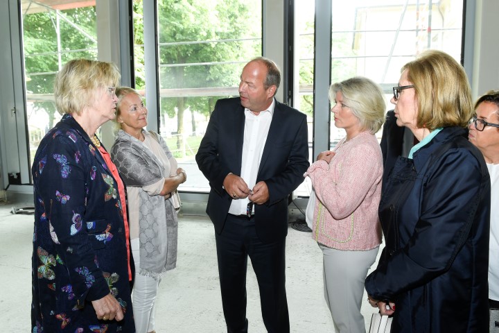 Im Anschluss nutzte die Gruppe die Gelegenheit, den künftigen Vortragsbereich des Ortwin Goldbeck Forums zu besichtigen. Hier sollen ab 2019 auch Veranstaltungen des IHC stattfinden können. Der gesamte Gebäudekomplex wurde mittlerweile von der Founders Foundation gemietet, die hier die Unternehmergenerationen von morgen ausbilden will. Die Founders Foundation gemeinnützige GmbH ist eine hundertprozentige Tochtergesellschaft der Bertelsmann Stiftung. Geschäftsführer Sebastian Borek, selbst IHC Mitglied, nutzte den Sommertreff für viele Gespräche.