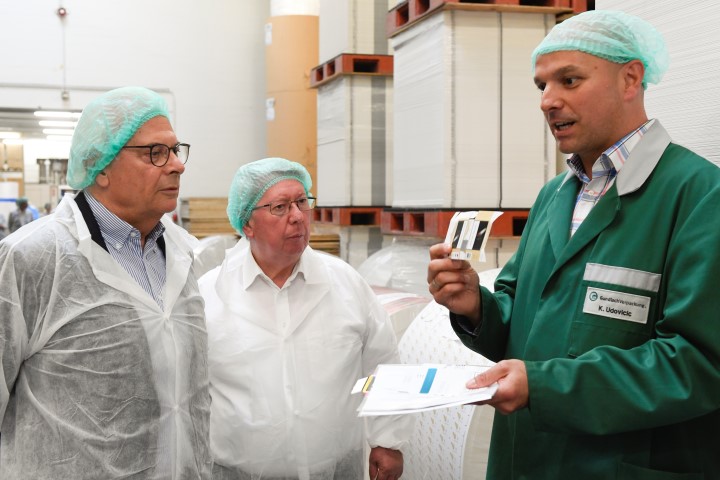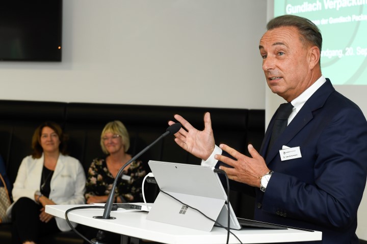 Dr. Uwe Schürmann, Vorsitzender der Geschäftsführung, gab im Vorfeld der Besichtigung des Standortes Oerlinghausen einen kurzen Abriss der Entwicklungsgeschichte des familiengeführten Unternehmens. Mit ihren heute drei Geschäftsbereichen GundlachVerpackung, GundlachPackagingDMCC und GundlachLogo beschäftigt die Gundlach-Gruppe 750 Mitarbeiterinnen und Mitarbeiter, davon 450 in Oerlinghausen. Weitere an den Standorten Mahlberg im Schwarzwald und Dubai, einem ausgewiesenen Hot-Spot für die Teeproduktion.