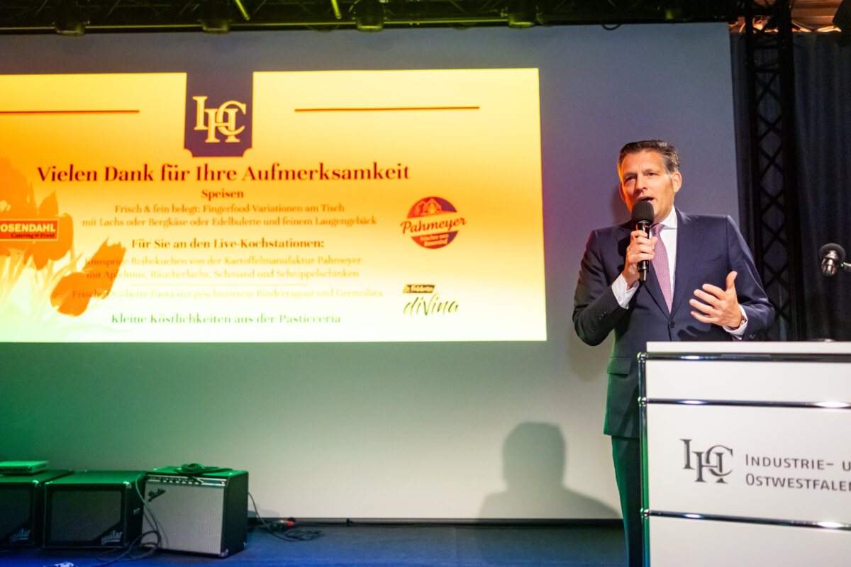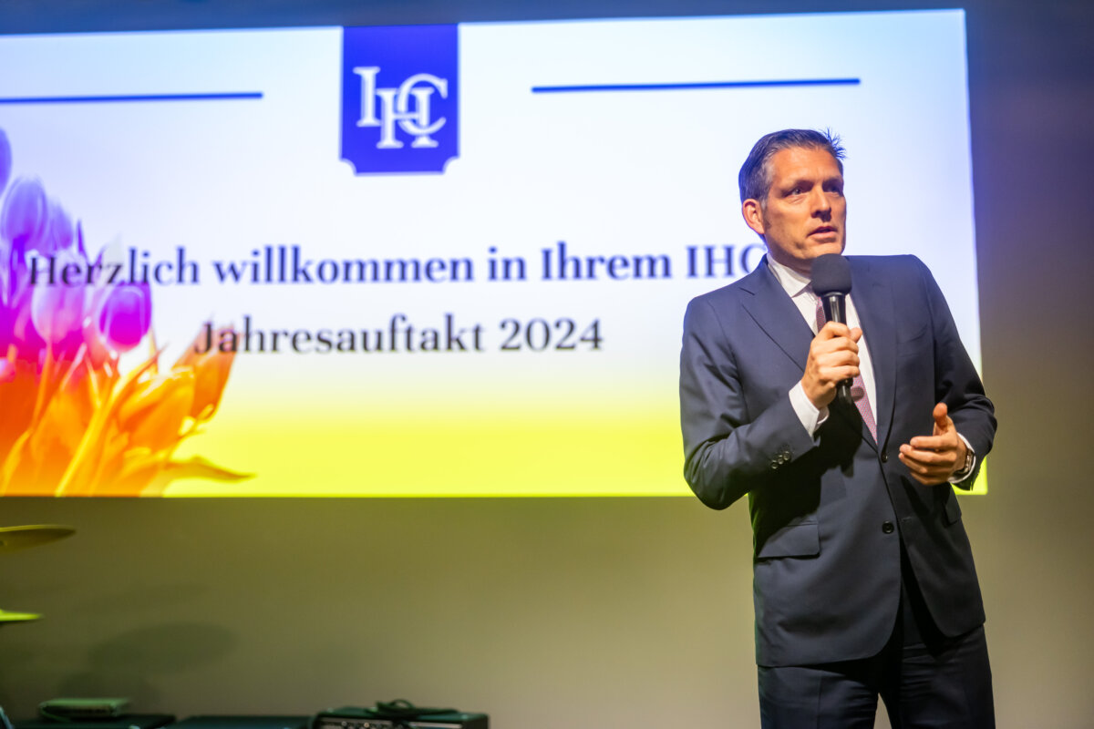 In seiner Begrüßung forderte IHC Präsident Eduard R. Dörrenberg von der Gesellschaft „Mut zur Veränderung“ ein. In Zeiten von Dauerkrisen sei dies der einzige Weg für Deutschland, wirtschaftlich nicht auf dem Abstellgleis zu landen. Angesichts aktueller Ereignisse nutzte Dörrenberg die Gelegenheit auch zu dem Appell, demokratiefeindlichen Entwicklungen entschieden entgegenzutreten. „Wir alle sind hier gefordert, damit nicht noch mehr Menschen an die politischen Ränder abdriften“.