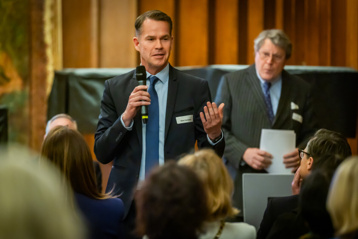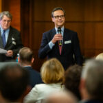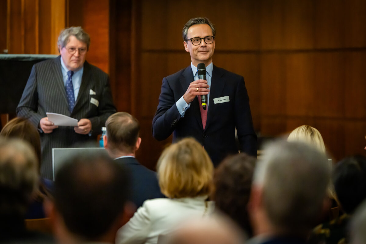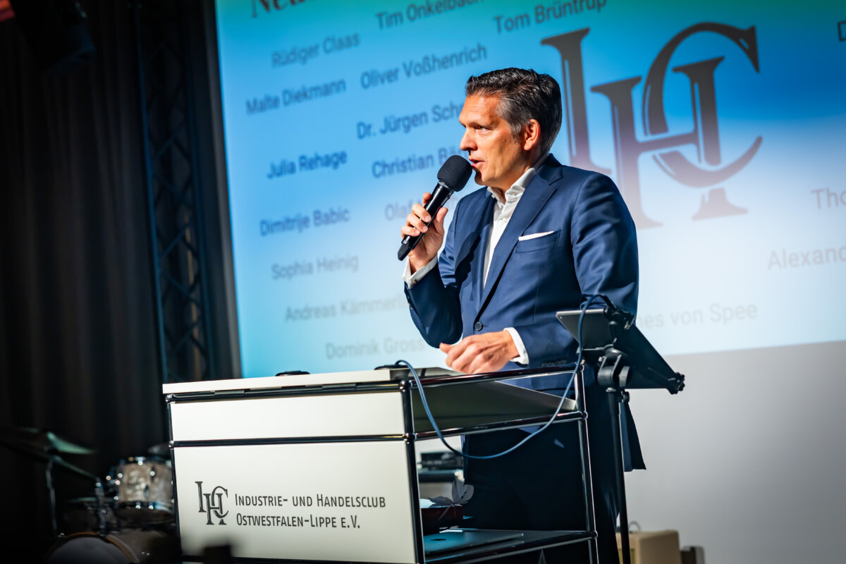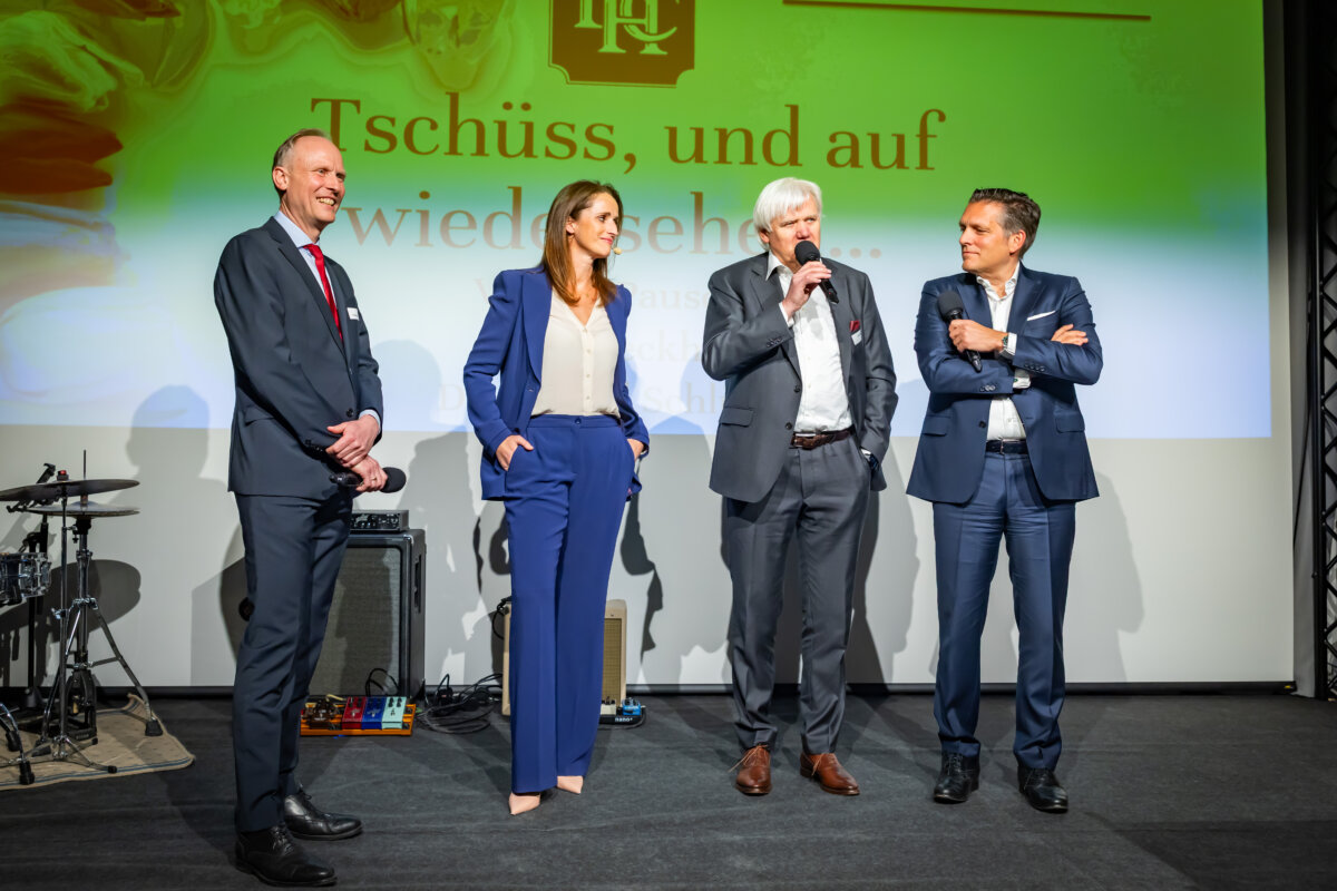Mit tiefem Dank und aufrichtiger Anerkennung wurden in der ehrwürdigen Rudolf-Oetker-Halle drei verdiente Präsidiumsmitglieder des Industrie- und Handelsclubs feierlich verabschiedet. Die offizielle Zeremonie wurde von Dr. Reinhard Zinkann, dem Ehrenpräsidenten des IHC, während der Mitgliederversammlung geleitet. Die drei ausscheidenden Präsidiumsmitglieder wurden mit Ehren bedacht: Verena Pausder (Geschäftsführerin Pausder Ventures GmbH), die durch ihr unermüdliches Engagement das Female Empowerment im Club maßgeblich vorangetrieben und innovative Formate des „NetzwerkF“ etabliert hat. Sie war seit 2019 Mitglied des Präsidiums und hat in den vergangenen sechs Jahren wertvolle Beiträge geleistet. Hans Beckhoff (Geschäftsführender Gesellschafter Beckhoff Automation GmbH & Co. KG), der mit seiner besonnenen Art und dem Leitspruch „Die Ingenieure müssen die Welt retten“ stets ein weiser Ratgeber im Präsidium war, kann nach acht Jahren im Amt nicht wiedergewählt werden. Dr. Harald Schlüter (Rechtsanwalt und Notar Schlüter, Riedenklau & Kollegen), der mit geschultem Auge die Finanzen des Clubs stets im Blick behielt und die IHC Satzung modernisierte, kann ebenfalls nach achtjähriger Amtszeit nicht wiedergewählt werden.