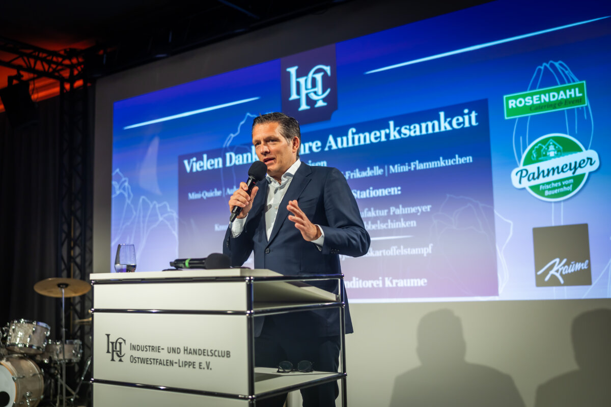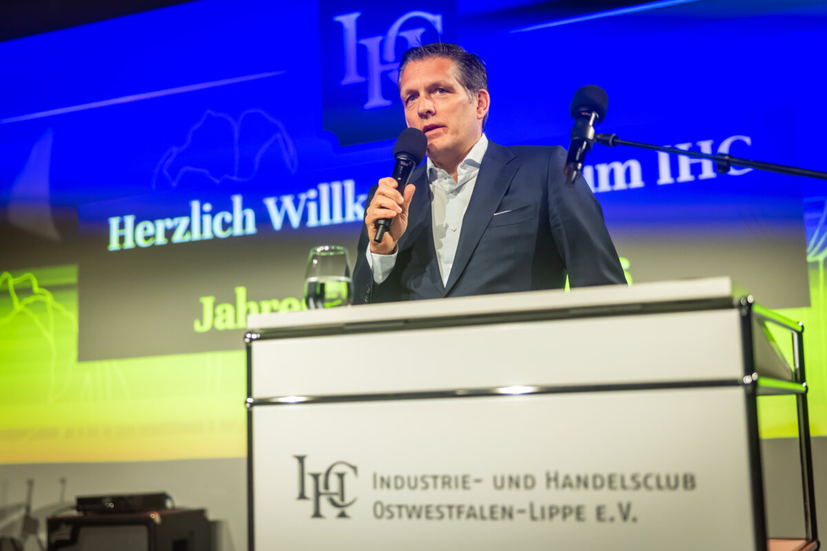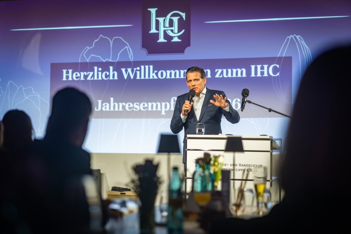 Die Forderung, selbst aktiv zu werden, um Änderungen voranzubringen, hatte zuvor auch schon IHC Präsident Eduard R. Dörrenberg in seiner Begrüßungsansprache geäußert. In Zeiten von Dauerkrisen und Dauer-Change (Stichwort Künstliche Intelligenz) forderte er einen „Mind Change“: „Wir brauchen Innovationskraft, Leistungsbereitschaft, Resilienz und den Willen zu gewinnen“, so Dörrenberg, „ansonsten werden wir von anderen überholt.“