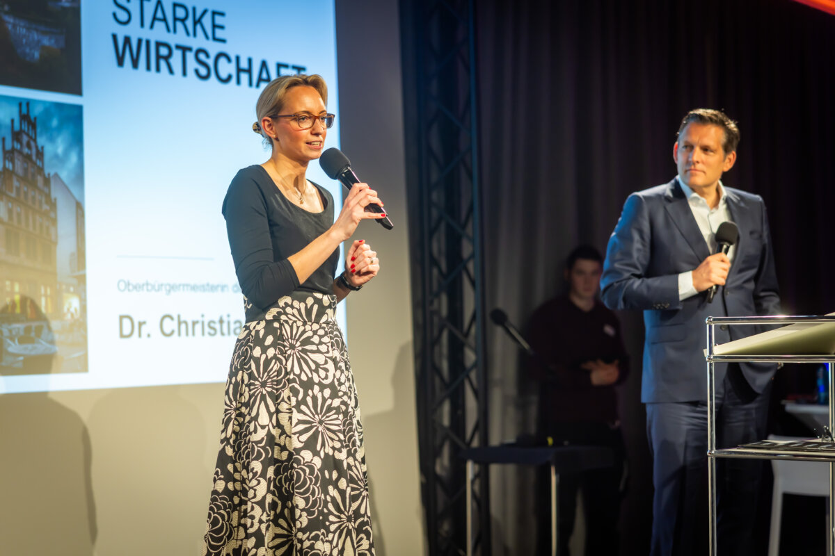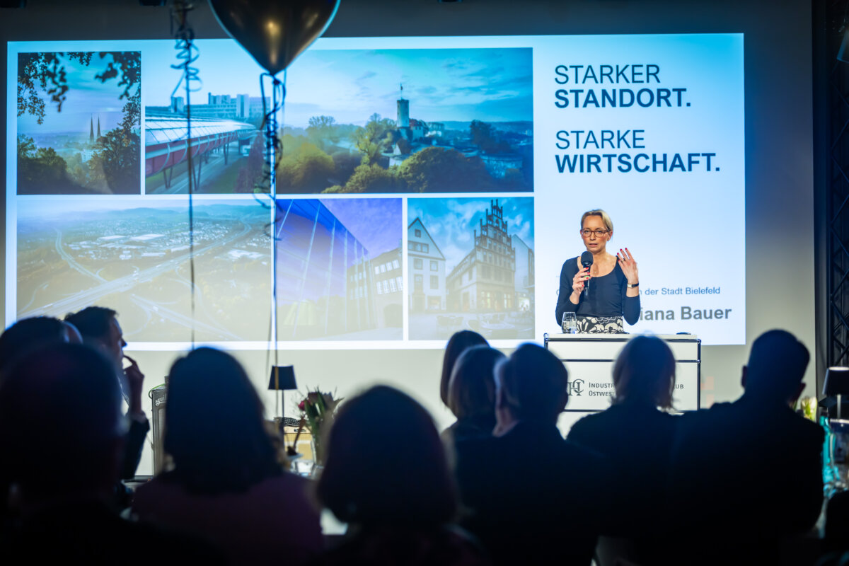 Auch in anderen Bereichen versprach Bauer den anwesenden Unternehmerinnen und Unternehmern, vor deren Mut und Risikobereitschaft sie großen Respekt habe, weniger Bürokratie. Außerdem kündigte sie mehr Gewerbeflächen, verstärkte Start-up- und Gründungsförderung sowie Initiativen zur Fachkräftesicherung an. „Wirtschaftsförderung ist keine Einbahnstraße“, erklärte Bauer, die sich für direkten Dialog auf allen Ebenen stark macht. „Wenn Sie anderswo etwas entdecken, was sie gern in Bielefeld verwirklicht sähen, sagen Sie es mir und wir werden es prüfen!“.