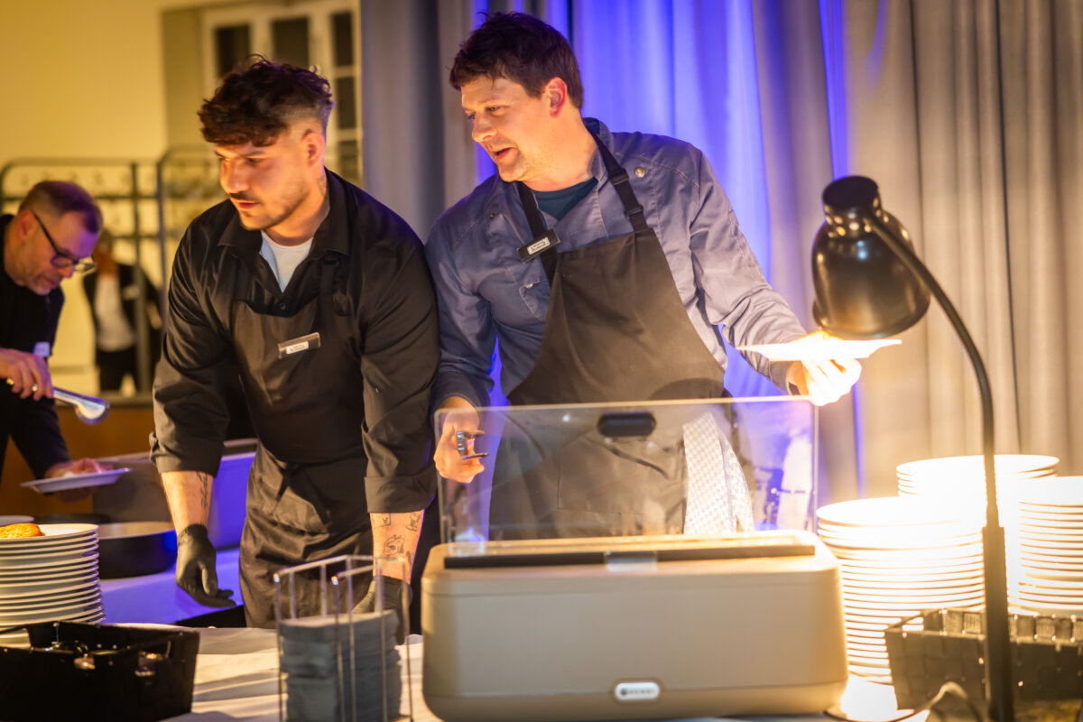 Nach den Keynotes begann der gesellige Teil des Abends. Der IHC Jahresempfang ist mittlerweile eine feste Größe im Vereinsprogramm des Industrie- und Handelsclubs OWL und im gesellschaftlichen Leben der Stadt Bielefeld. Auch in diesem Jahr folgten knapp 300 Gäste aus Wirtschaft, Politik, Kultur und Gesellschaft der Einladung in die Bielefelder Rudolf-Oetker-Halle. Dort hatte IHC Geschäftsführerin Cornelia Moss mit ihrem Team und durch Unterstützung zahlreicher Sponsoren wieder alles aufgeboten, was es für einen gelungenen Abend brauchte: Live Cooking Stationen verwöhnten die Gäste mit kulinarischen Leckereien und eine Liveband sorgt für eine beschwingte Stimmung. Die zahlreich erschienenen Mitglieder und Gäste nutzten gern die Gelegenheit, um alte und neue Bekanntschaften zu pflegen und sich auszutauschen.