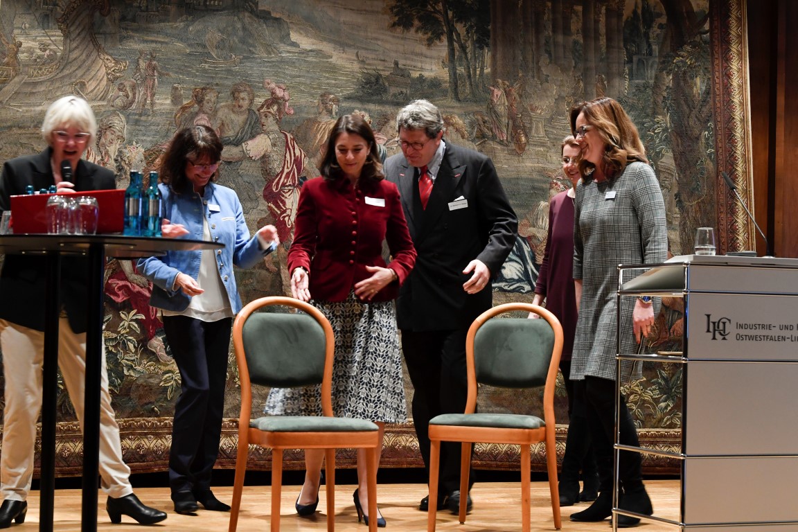 Im Vorfeld der IHC Mitgliederversammlung wurden die Preisträgerinnen und Preisträger des IHC IPP geehrt. In den letzten 24 Jahren sind 70 Studierende ausgewählt worden, die einen Zuschuss in Höhe von 3.600 Euro für ein dreimonatiges Auslandspraktikum in Kooperation mit einem Unternehmen der Region bekommen. Applaus gab es für Elisa Gütschleg von der Universität Paderborn und Sophia Cara Hahn, Fachhochschule Bielefeld. Der dritte Preisträger, Timo Dominik Kniepkamp von der Universität Bielefeld arbeitet derzeit in New York.