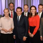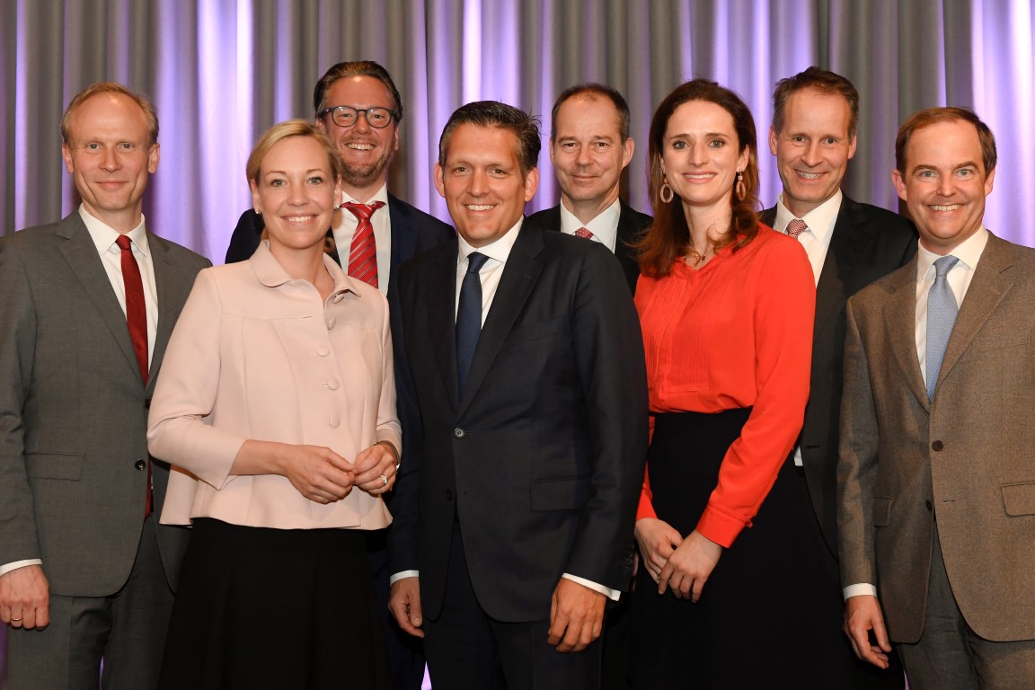 Einstimmig gewählt: Das IHC Präsidium für die Amtszeit 2019 bis 2021. Im Bild (v. l.): Dr. Harald Schlüter, Laura von Schubert, Philip F. W. Harting, IHC Präsident Eduard R. Dörrenberg, IHC Vizepräsident Christoph Mohn, Verena Pausder, Jörg-Uwe Goldbeck, Michael W. Böllhoff. Auf dem Foto fehlt Hans Beckhoff.