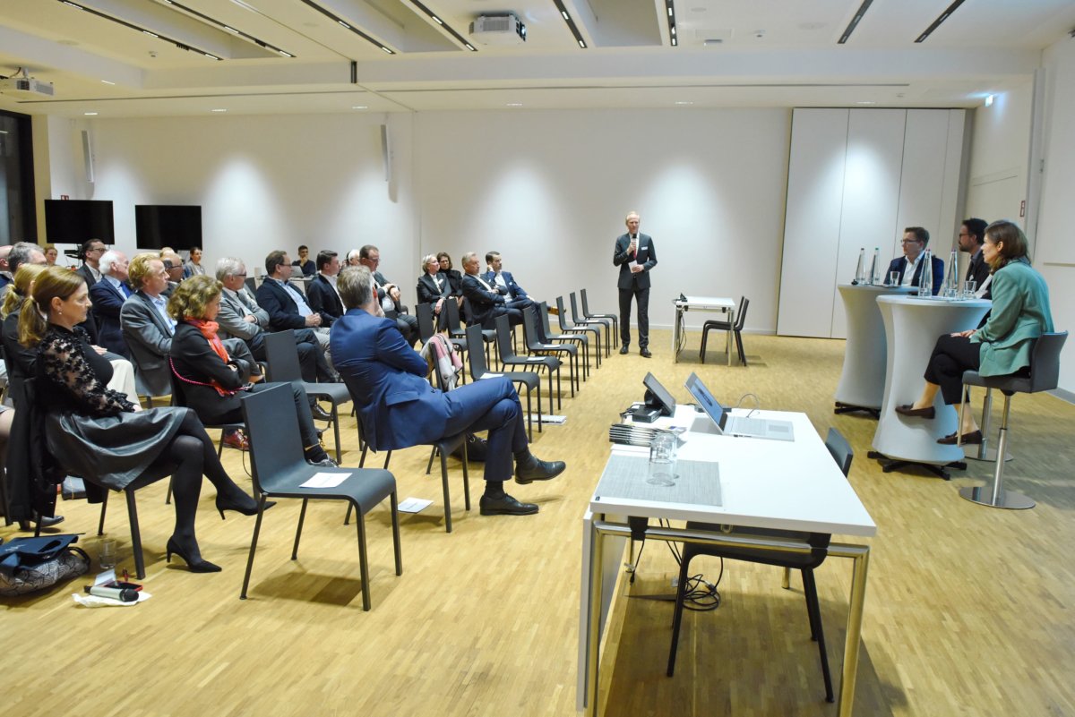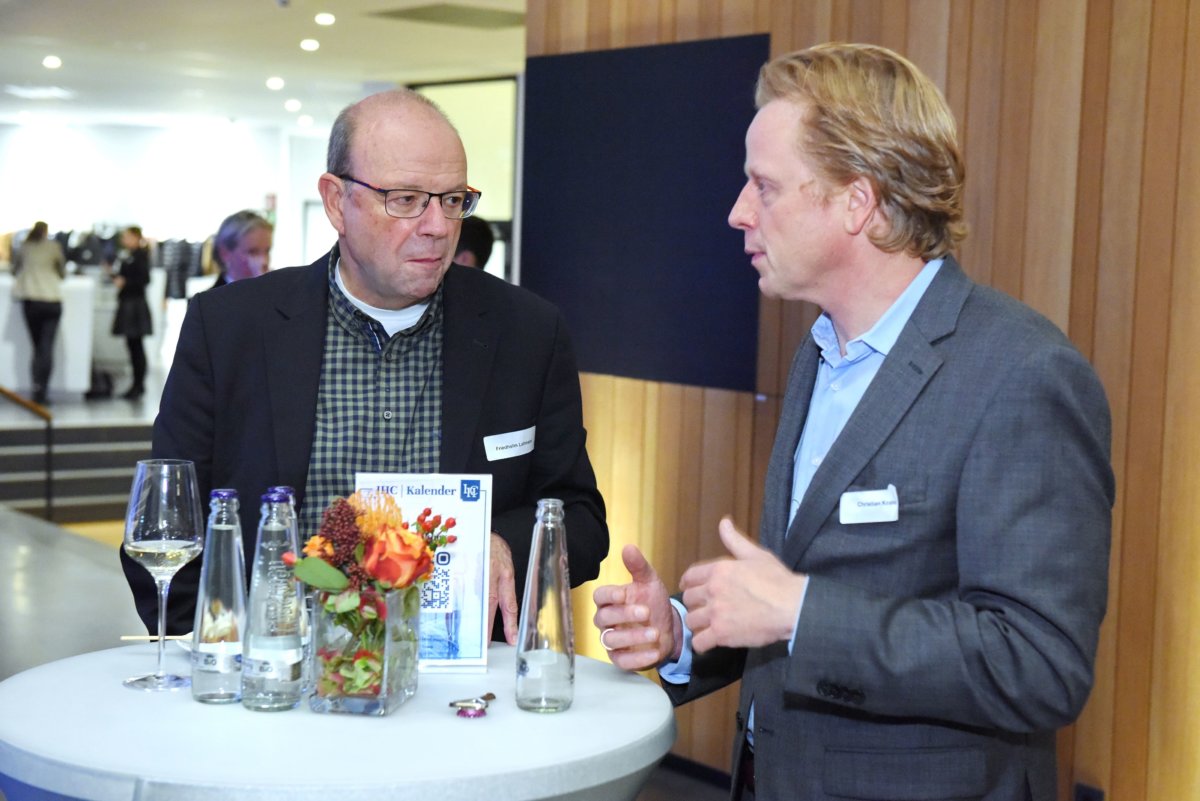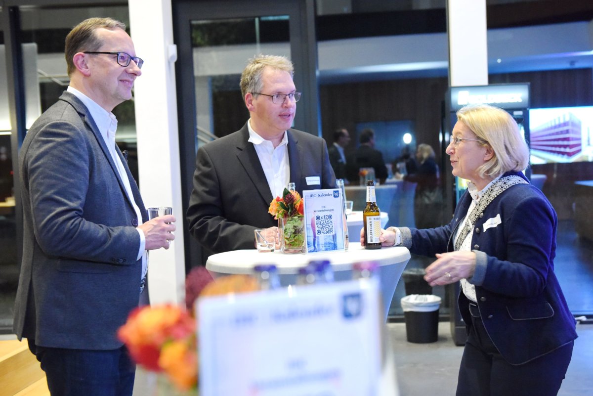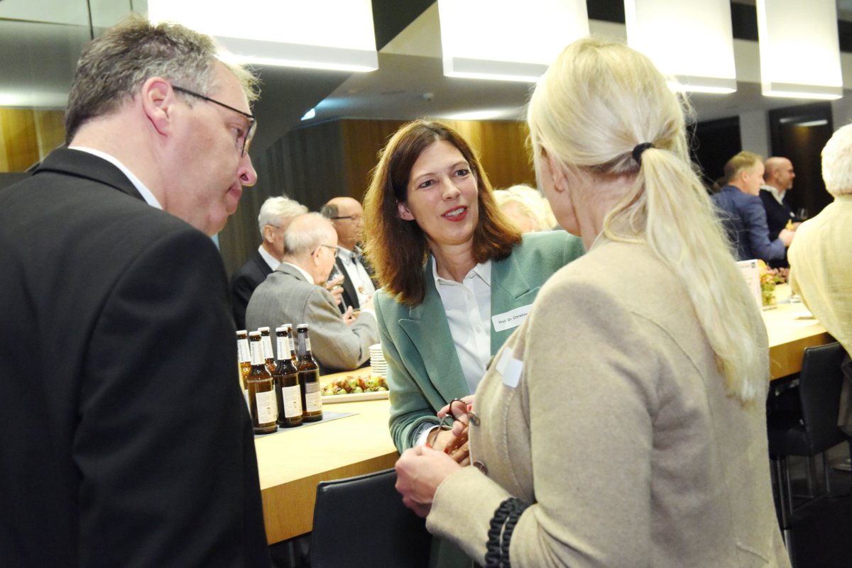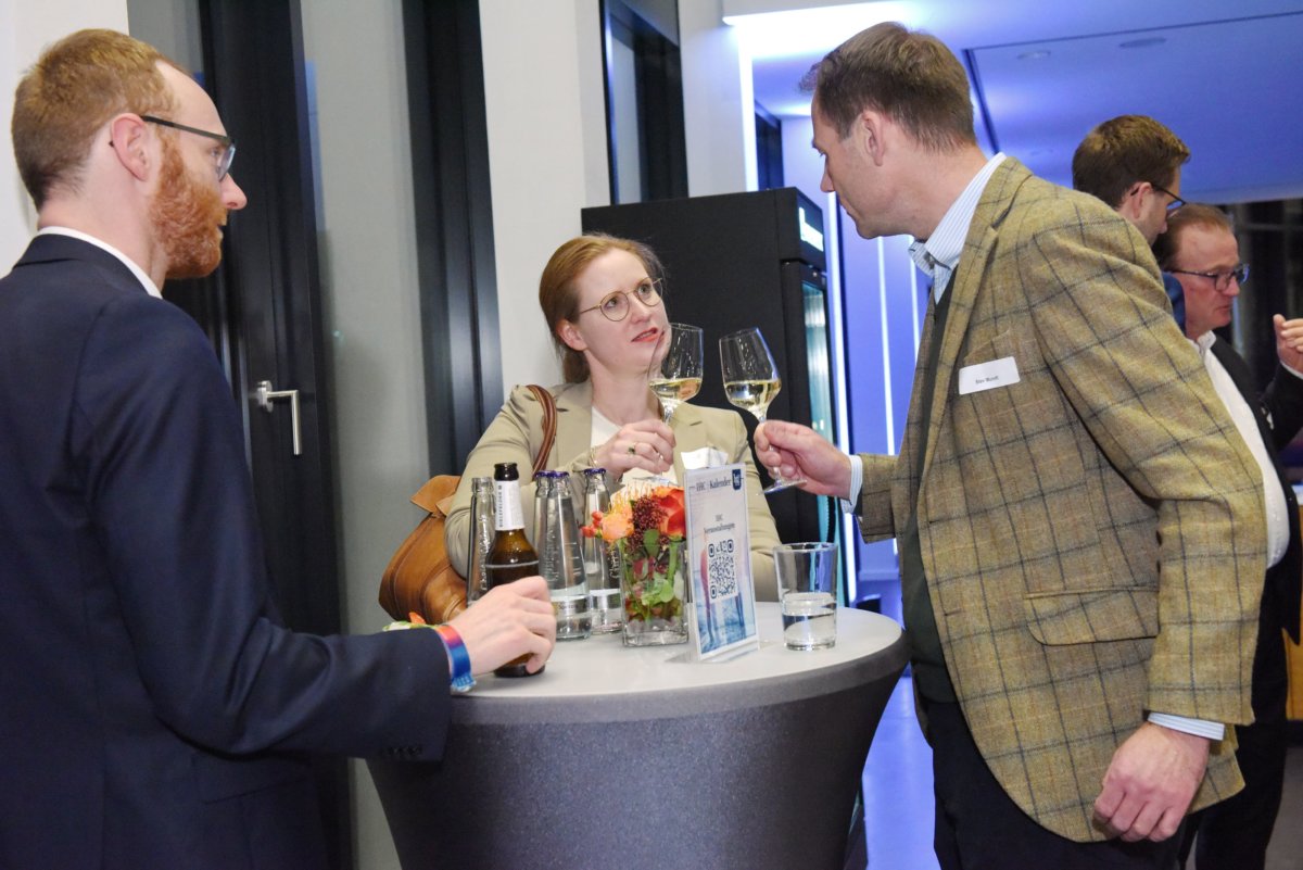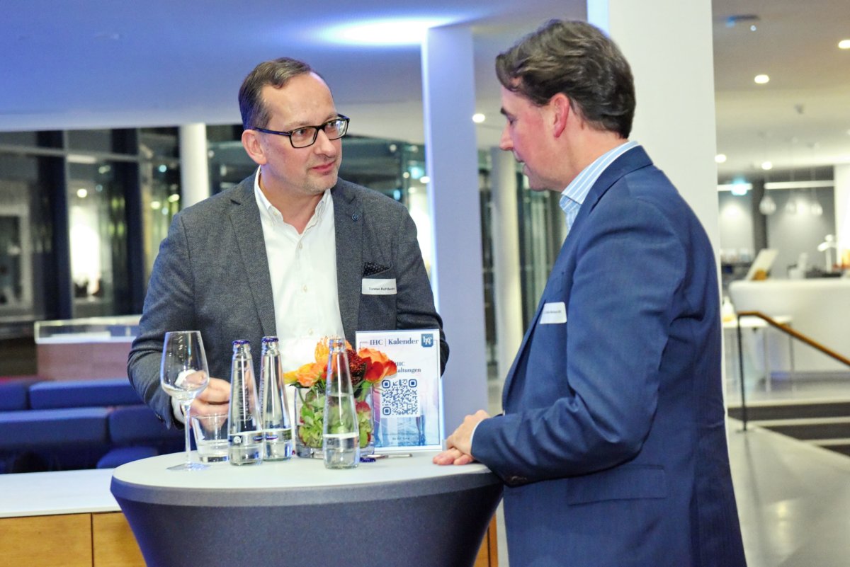 Sind Familienunternehmen aufgrund ihrer besonderen Strukturen besonders krisenresilient? Studien ließen dies vermuten, auch wenn es keine ganz eindeutigen Ergebnisse gebe, so Christina Hoon. Eine Rolle spielten hierbei die emotionale Verankerung der Unternehmensführung, kurze Entscheidungswege, da Eigentum und Entscheidungsmacht in einer Hand liegen und finanzielle Stabilität durch oft konservative Kapitalausstattung. „Familienunternehmen können Krise“, lautete ihr Fazit. Im Anschluss an die Podiumsdiskussion nutzten IHC-Mitglieder und Gäste noch die Gelegenheit, in den Räumen der Goldbeck GmbH mit den Experten ins Gespräch zu kommen.
