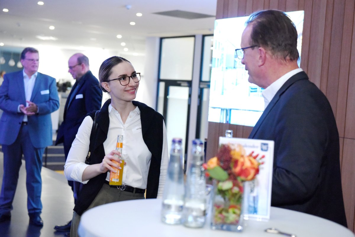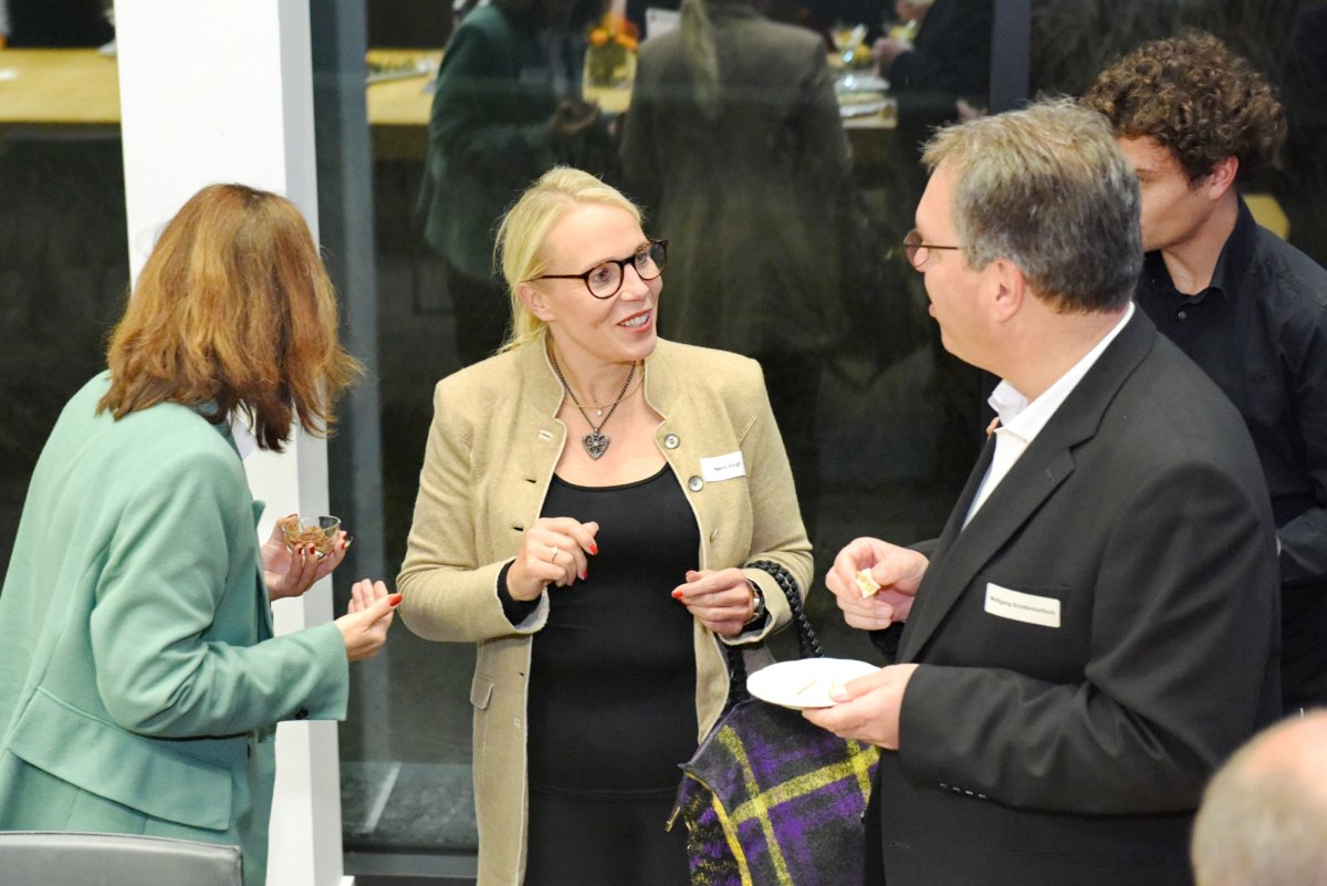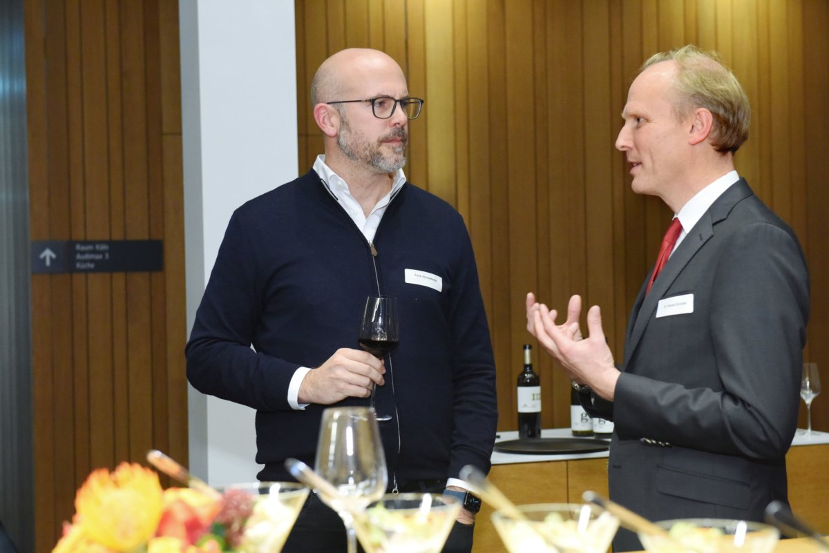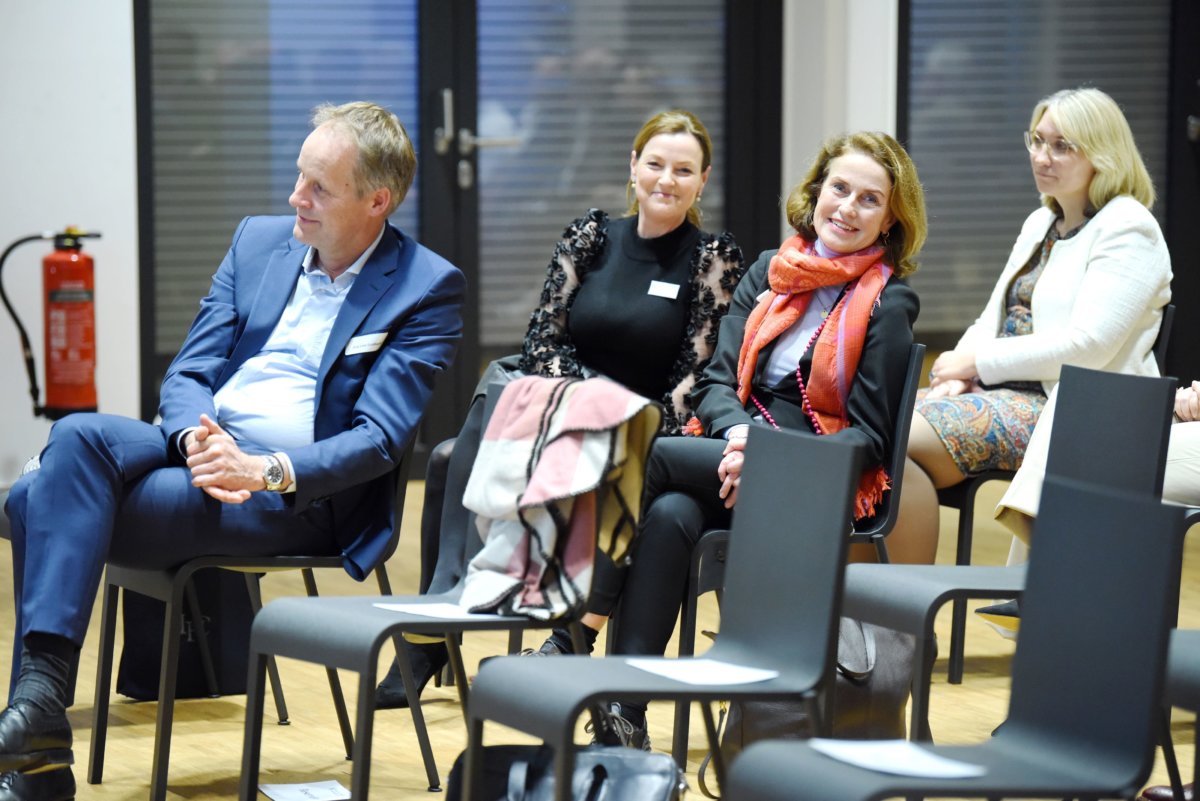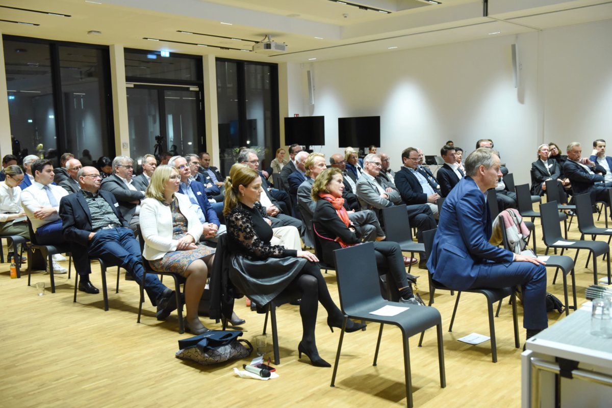 Sind Familienunternehmen aufgrund ihrer besonderen Strukturen besonders krisenresilient? Studien ließen dies vermuten, auch wenn es keine ganz eindeutigen Ergebnisse gebe, so Christina Hoon. Eine Rolle spielten hierbei die emotionale Verankerung der Unternehmensführung, kurze Entscheidungswege, da Eigentum und Entscheidungsmacht in einer Hand liegen und finanzielle Stabilität durch oft konservative Kapitalausstattung. „Familienunternehmen können Krise“, lautete ihr Fazit. Im Anschluss an die Podiumsdiskussion nutzten IHC-Mitglieder und Gäste noch die Gelegenheit, in den Räumen der Goldbeck GmbH mit den Experten ins Gespräch zu kommen.