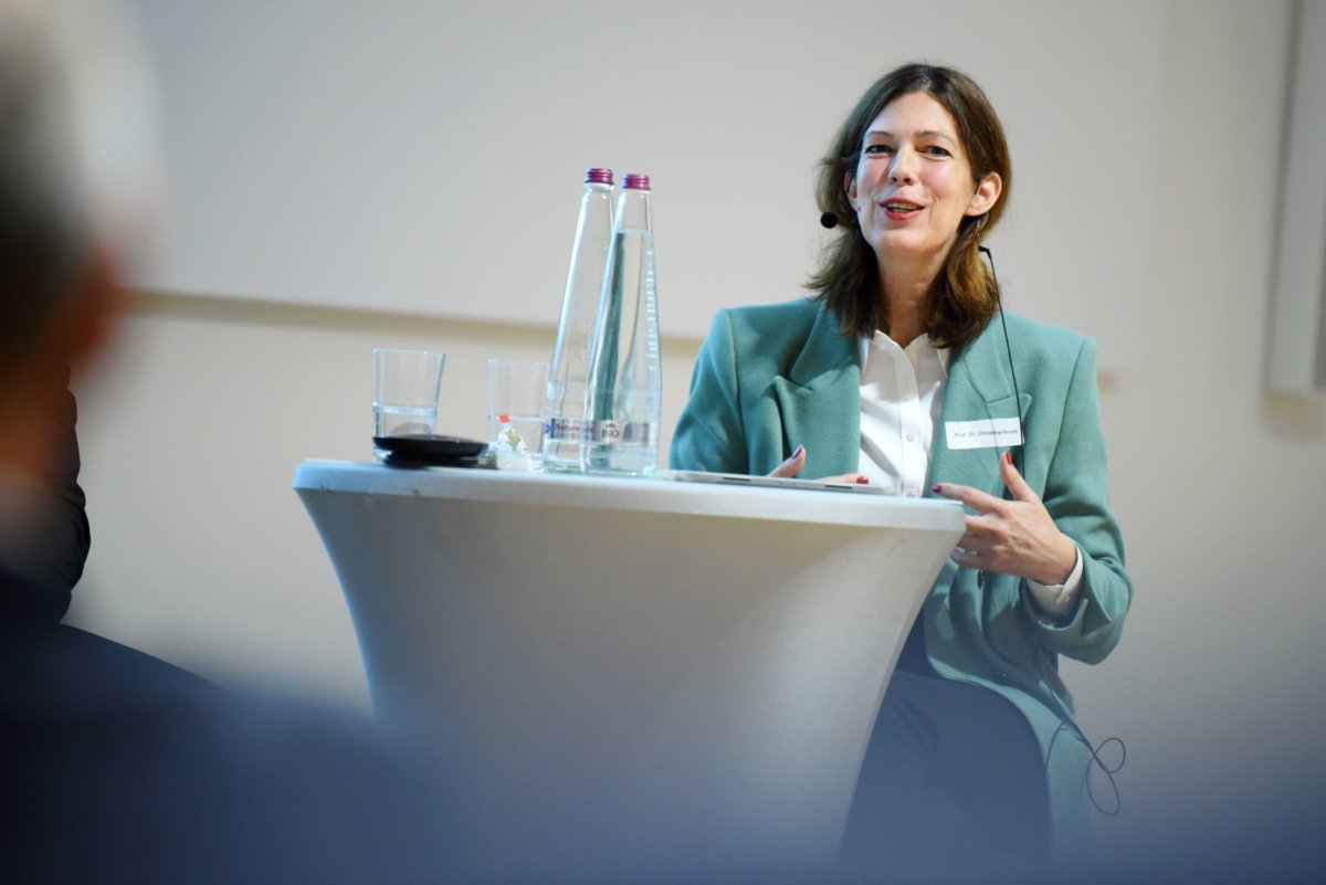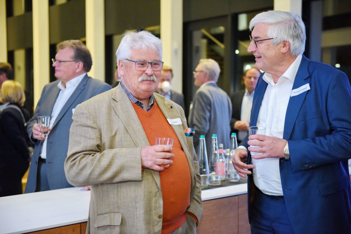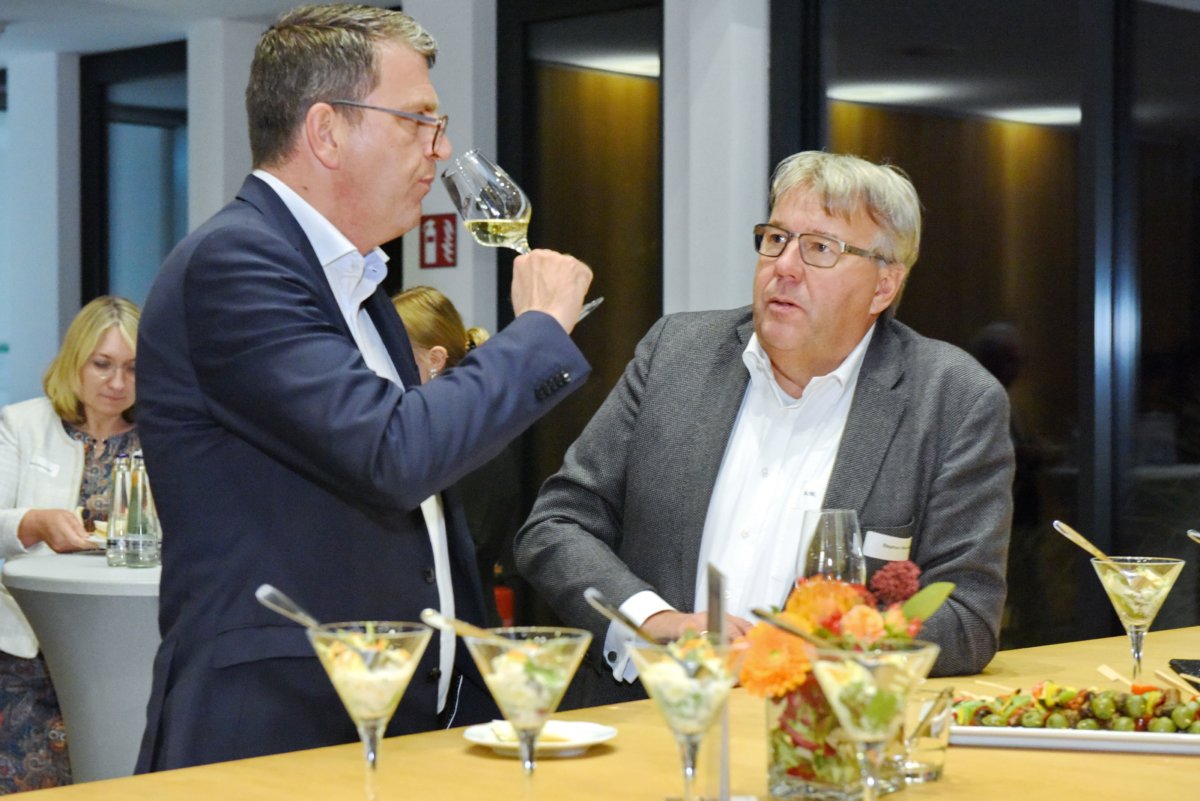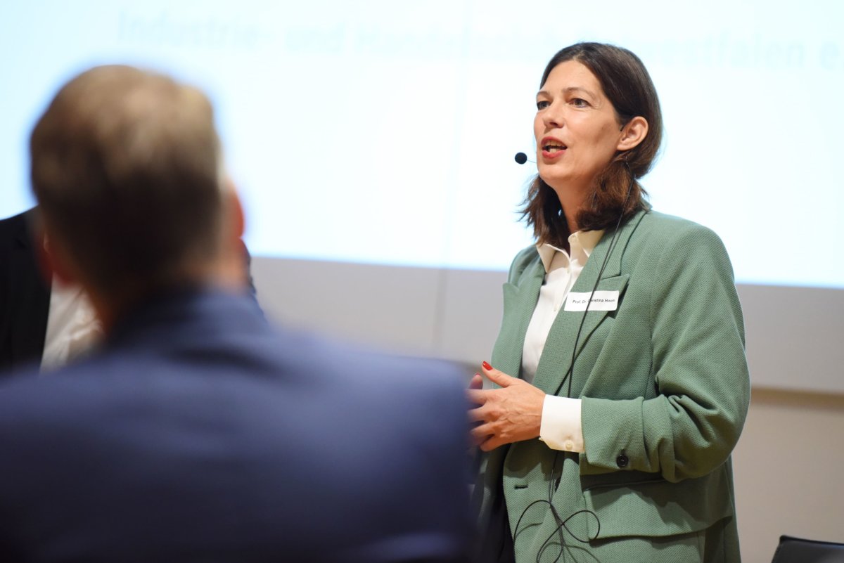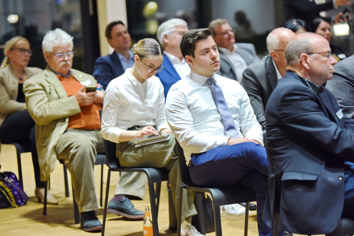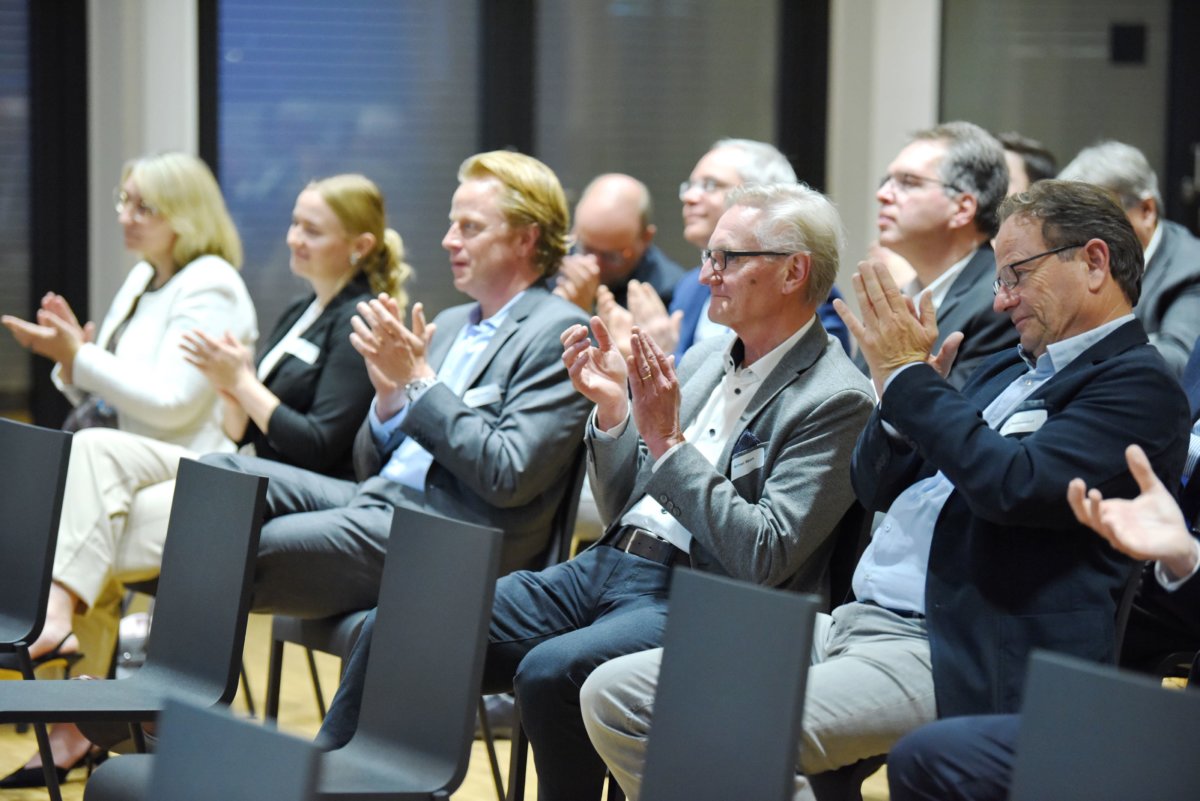 Sind Familienunternehmen aufgrund ihrer besonderen Strukturen besonders krisenresilient? Studien ließen dies vermuten, auch wenn es keine ganz eindeutigen Ergebnisse gebe, so Christina Hoon. Eine Rolle spielten hierbei die emotionale Verankerung der Unternehmensführung, kurze Entscheidungswege, da Eigentum und Entscheidungsmacht in einer Hand liegen und finanzielle Stabilität durch oft konservative Kapitalausstattung. „Familienunternehmen können Krise“, lautete ihr Fazit. Im Anschluss an die Podiumsdiskussion nutzten IHC-Mitglieder und Gäste noch die Gelegenheit, in den Räumen der Goldbeck GmbH mit den Experten ins Gespräch zu kommen.