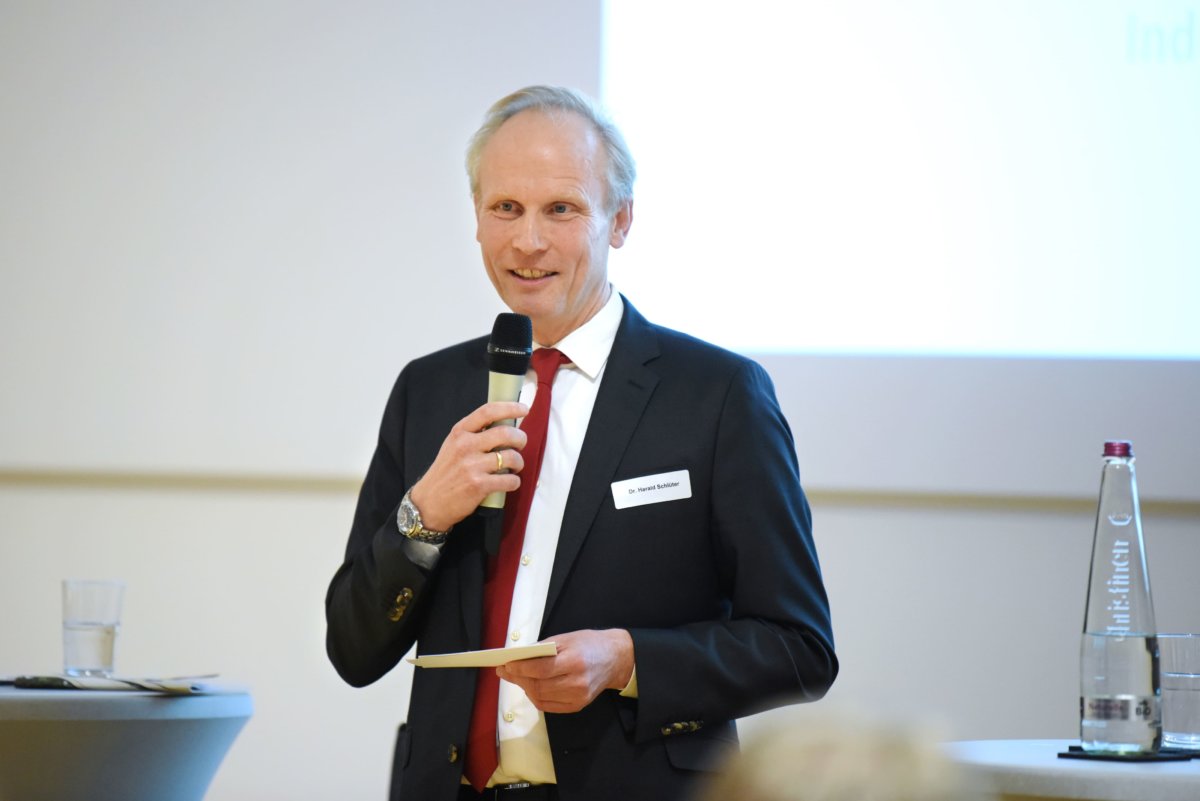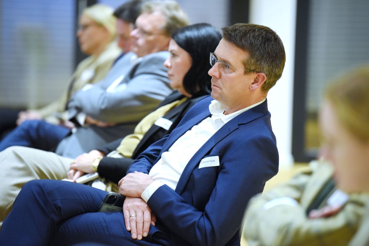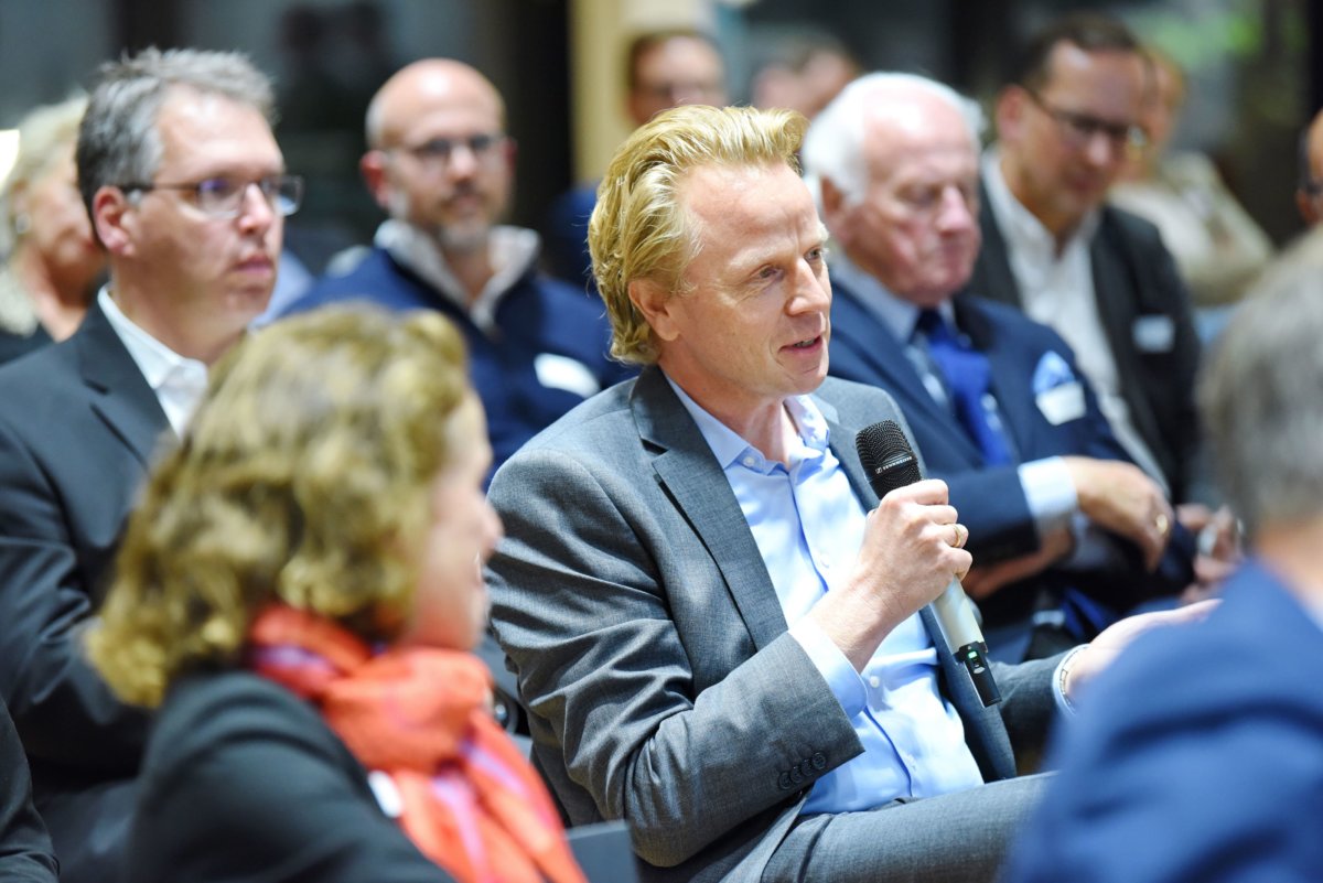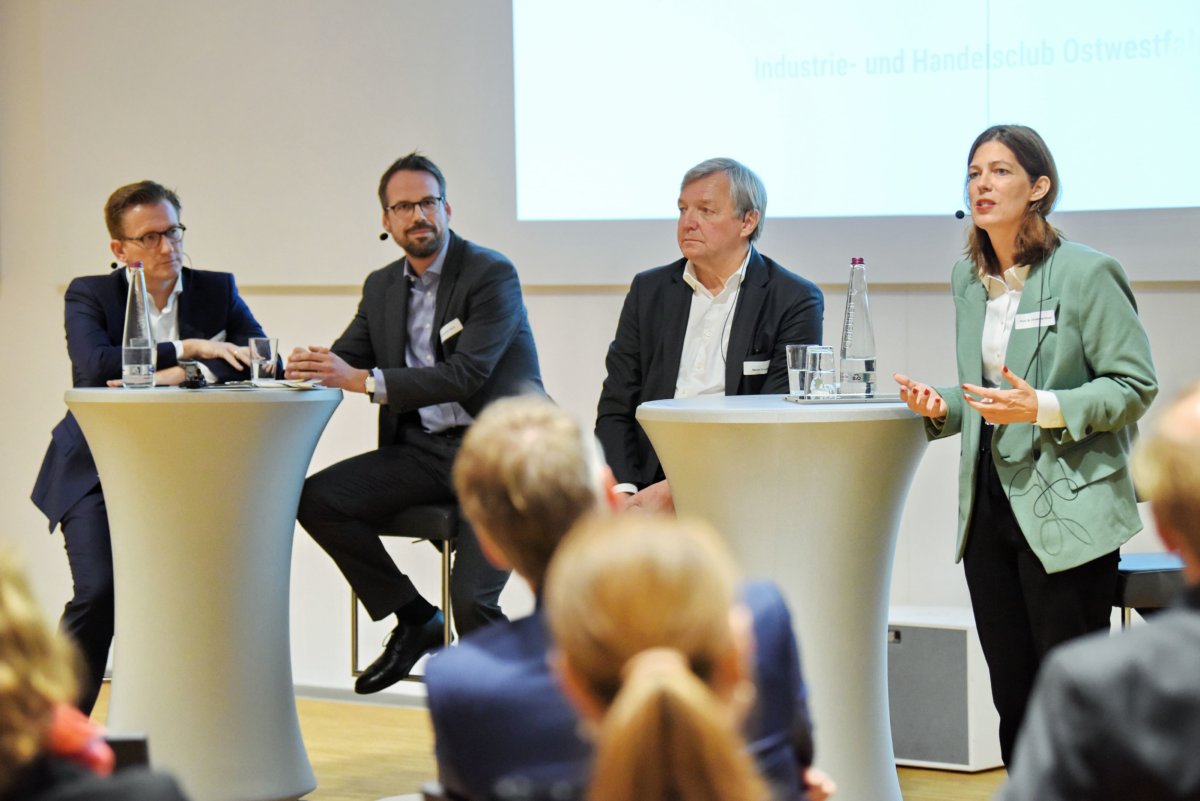 Wie solch eine resiliente Haltung in der Praxis aussehen kann, diskutierten Expertinnen und Experten im Goldbeck Forum auf Einladung des Industrie- und Handelsclubs OWL, IHC. Moderiert von IHC-Präsidiumsmitglied Dr. Harald Schlüter antworteten Prof. Dr. Christina Hoon (Lehrstuhlinhaberin „Führung von Familienunternehmen“ an der Universität Bielefeld), Christopher Heine (CEO beim Filtrationsspezialist Hengst SE), Martin Krengel (Vorstandsvorsitzender WEPA Gruppe) und Dr. Michael Meier (Leiter Family Business Advisory Egon Zehnder) auf Fragen der zahlreichen IHC-Mitglieder und Gäste.