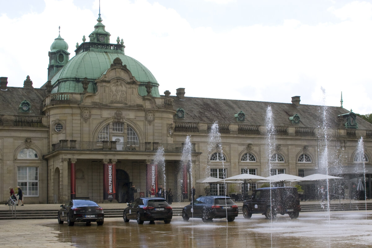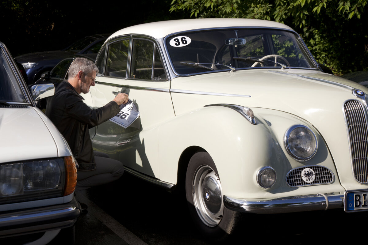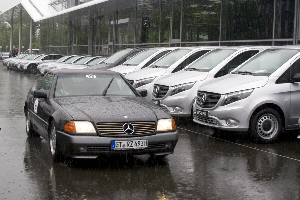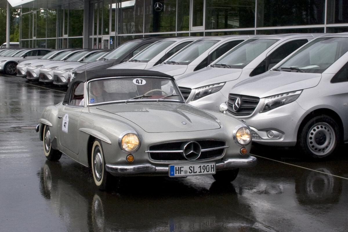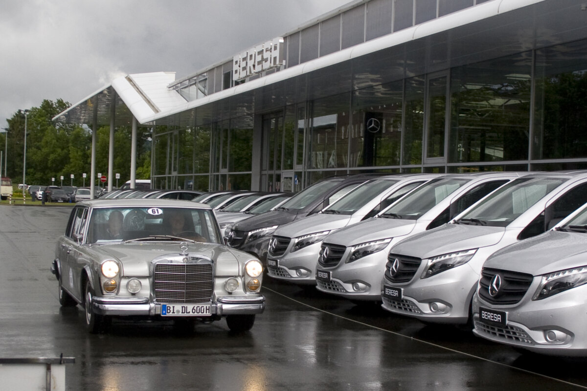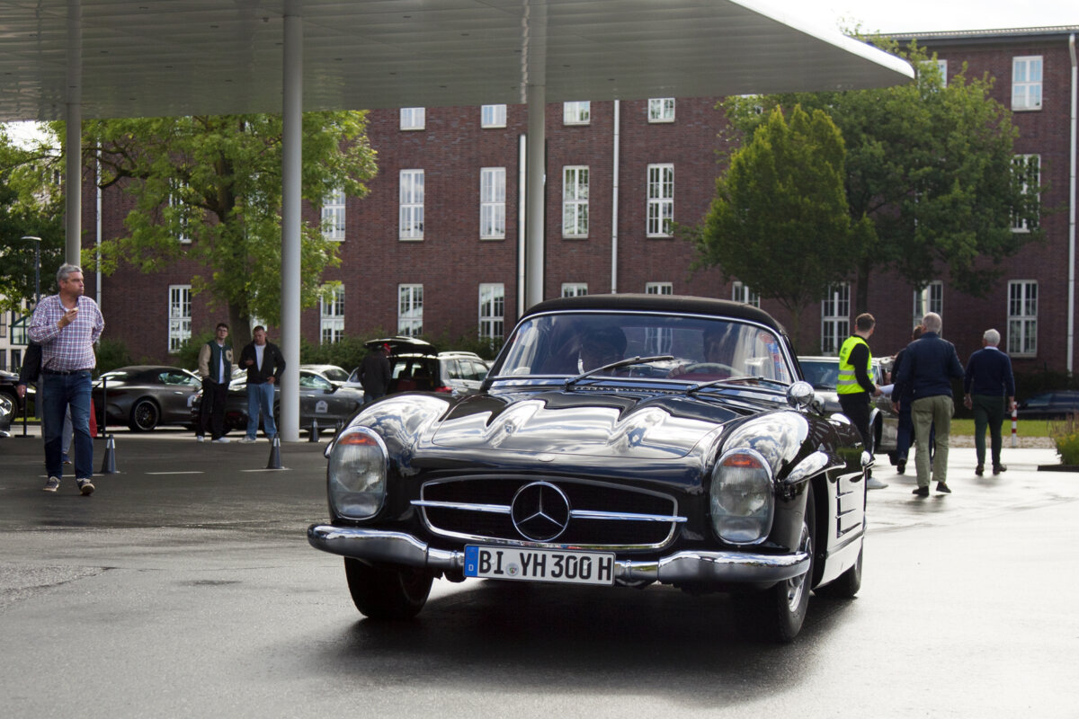 Rund 200 Kilometer ging es für die Fahrerinnen und Fahrern mit ihren 75 Oldtimern und Youngtimern in einem Parcours rund um Herford, vorbei an zahlreichen Schlössern und Gutshäusern und mitten durch die schönsten Landschaften. Die Route führte über Schloss Holtfeld, Schloss Brincke, Gut Böckel, Schloss Mühlenburg und Schloss Ulenburg nach Bad Oeynhausen, wo im GOP das Mittagessen eingenommen wurden. Nach der Pause ging es von dort über Haus Schadde, die Brennerei Begatal, Schloss Wendlinghausen, Schloss Brake, Lemgo Fußgängerzone und Schloss Iggenhausen wieder zurück nach Bielefeld. Mittlerweile hatte sich auch das Wetter etwas beruhigt.