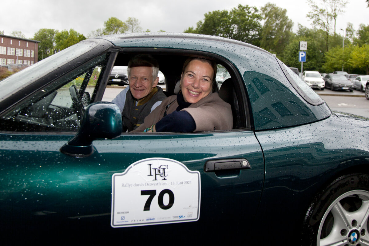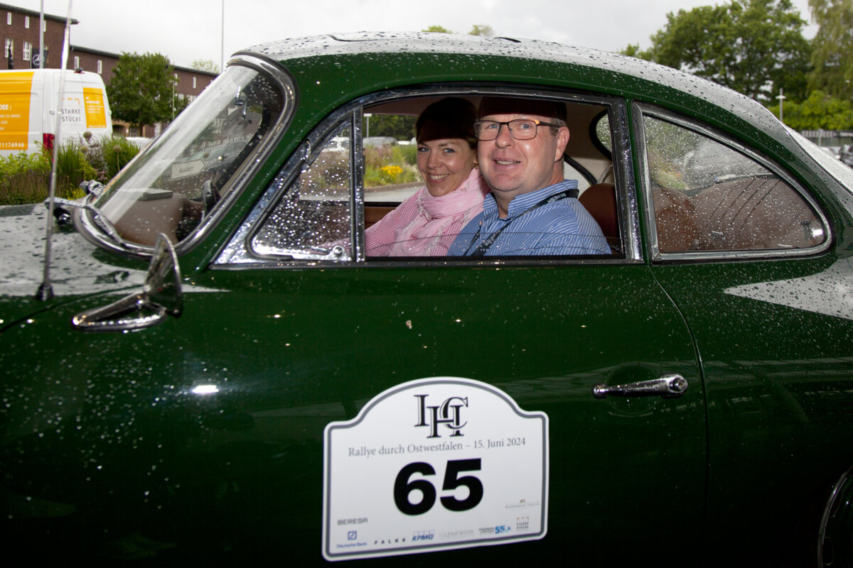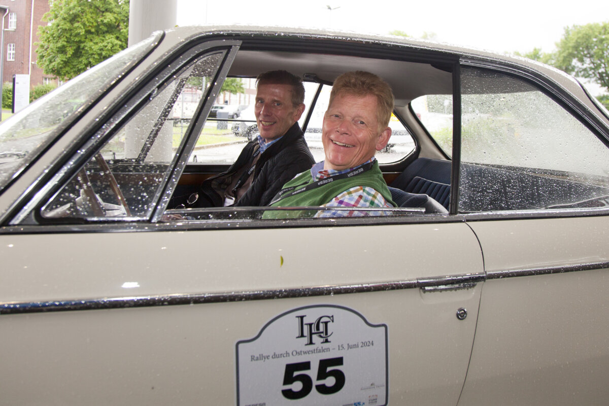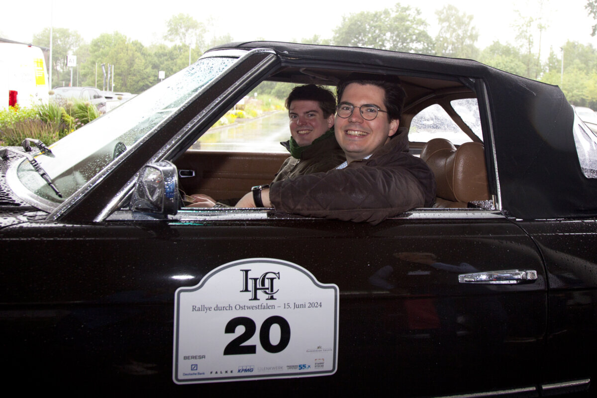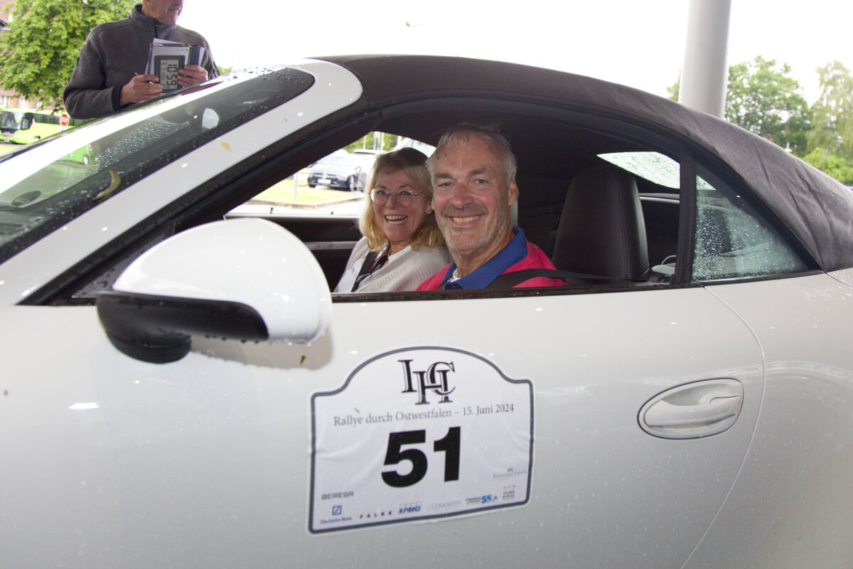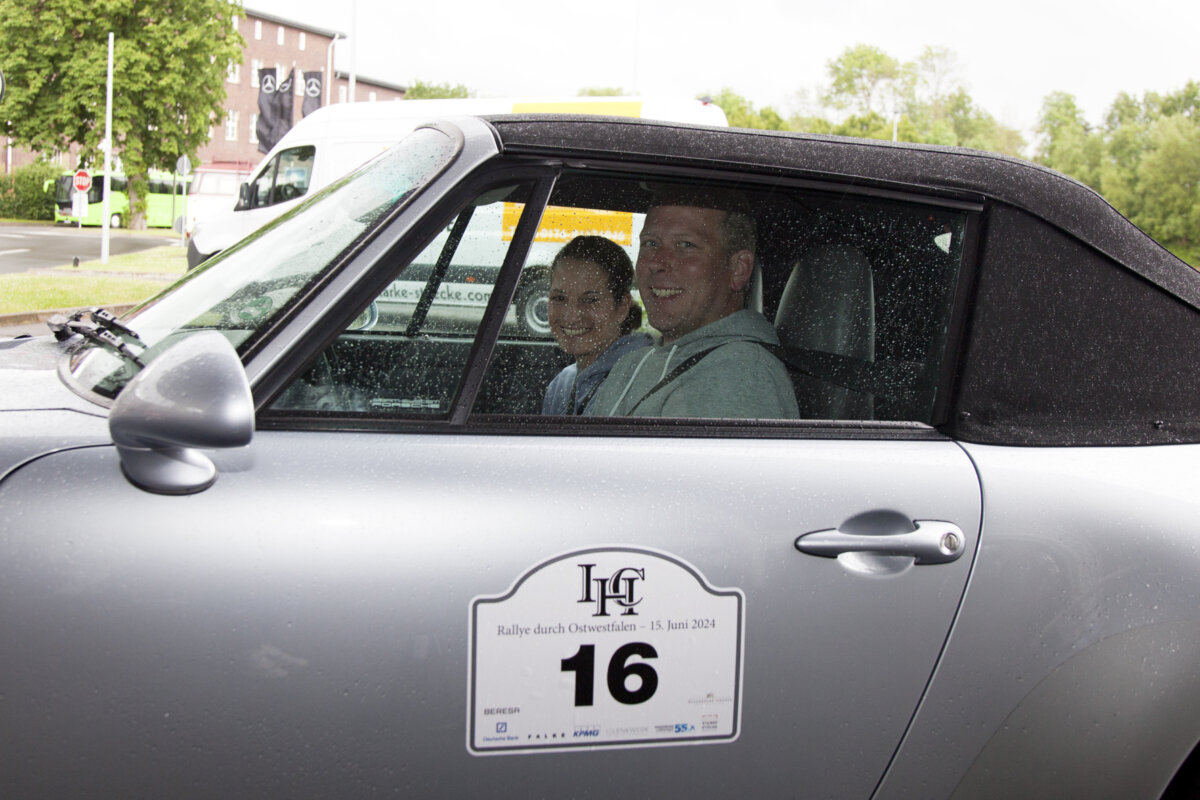 Der strömende Regen beim Start konnte niemandem die gute Laune verderben. Schon lange hatten sich die Teilnehmerinnen und Teilnehmer auf die 13. IHC-Rallye gefreut, die am 15. Juni 2024 stattfand. Pünktlich um 9.01 Uhr nach dem Frühstück rollte das erste Fahrzeug vom Start- und Zielpunkt Beresa in Bielefeld auf die Strecke.