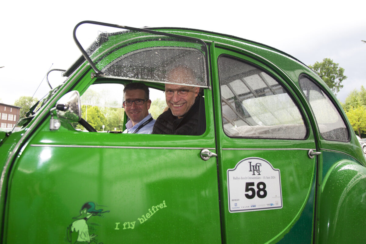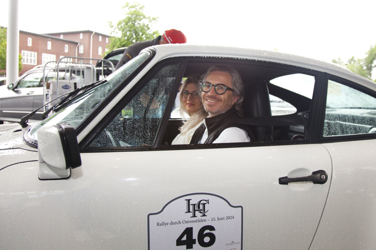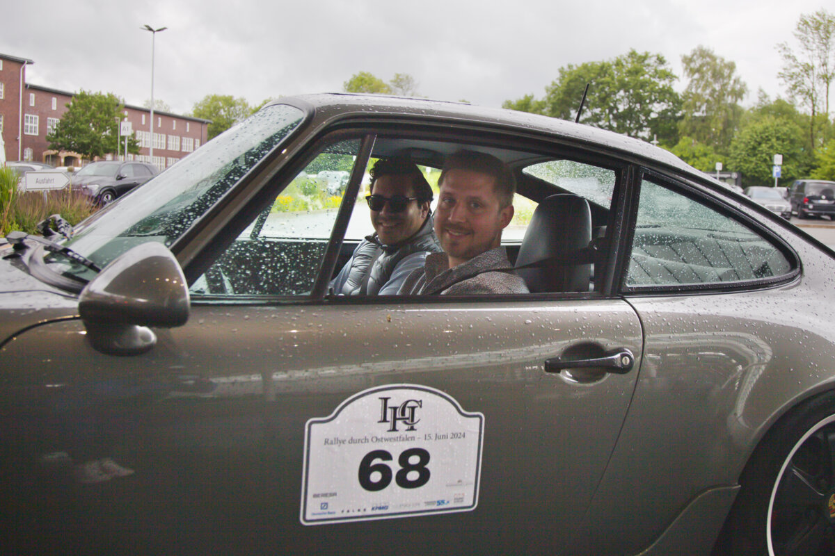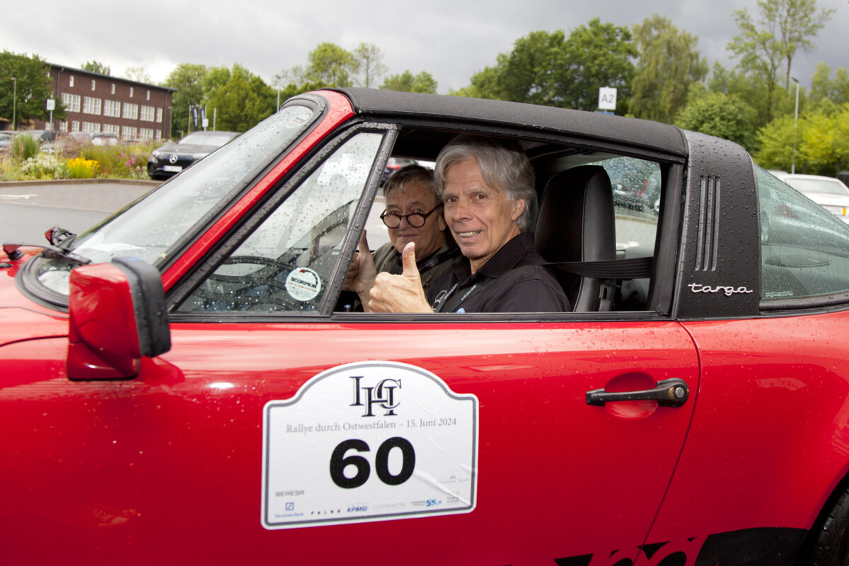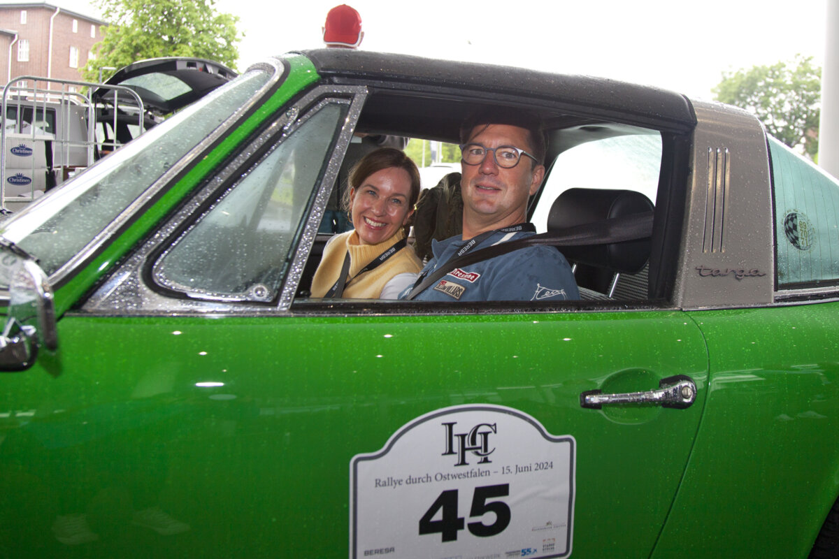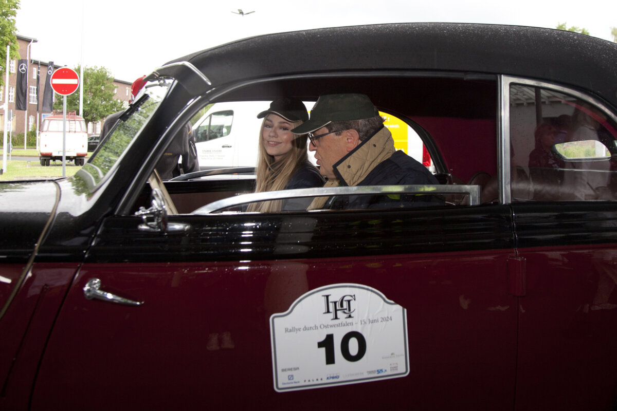 Der strömende Regen beim Start konnte niemandem die gute Laune verderben. Schon lange hatten sich die Teilnehmerinnen und Teilnehmer auf die 13. IHC-Rallye gefreut, die am 15. Juni 2024 stattfand. Pünktlich um 9.01 Uhr nach dem Frühstück rollte das erste Fahrzeug vom Start- und Zielpunkt Beresa in Bielefeld auf die Strecke.