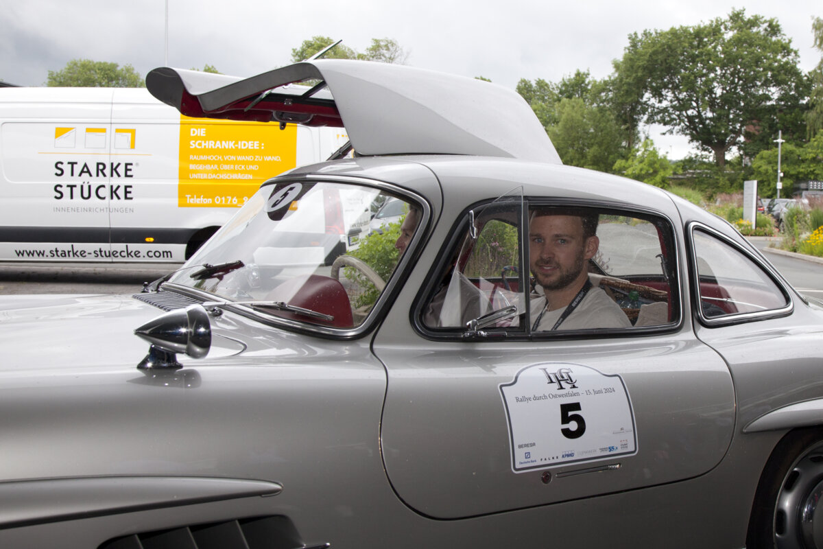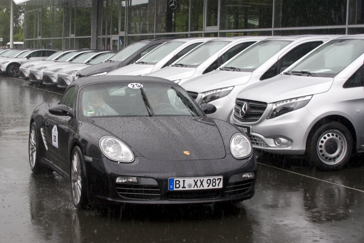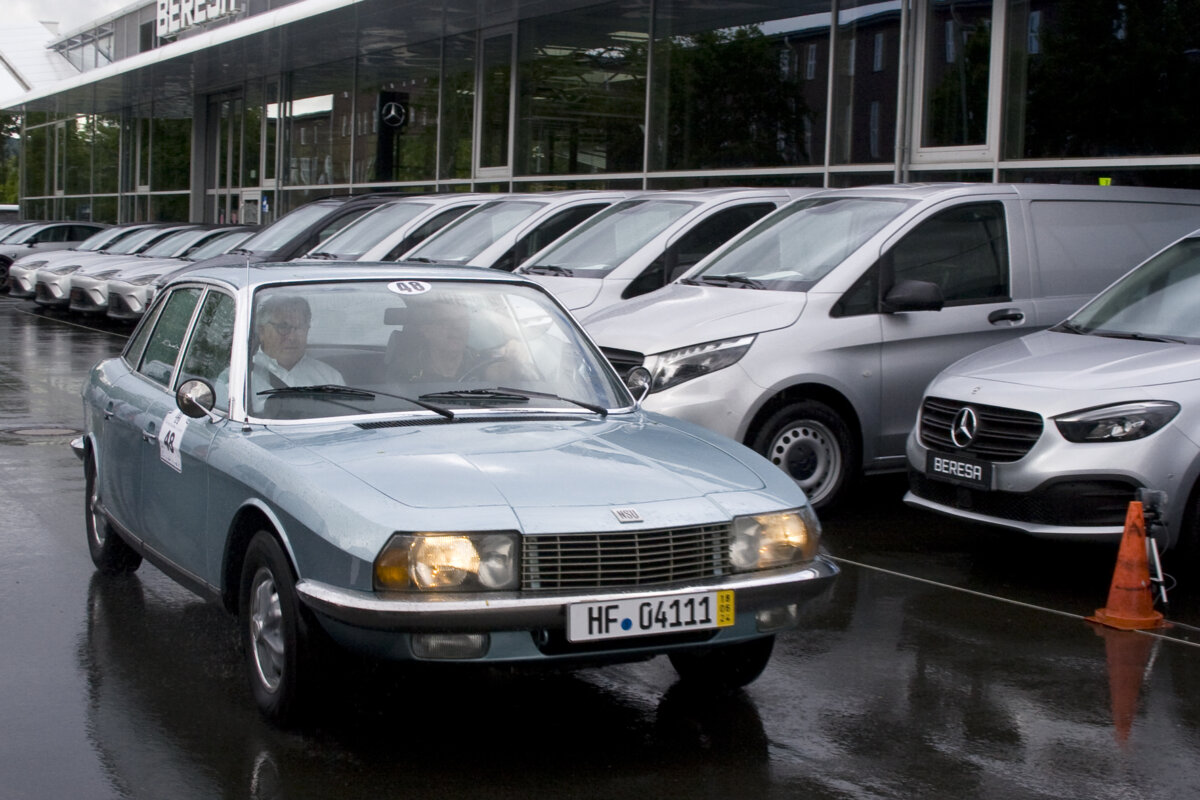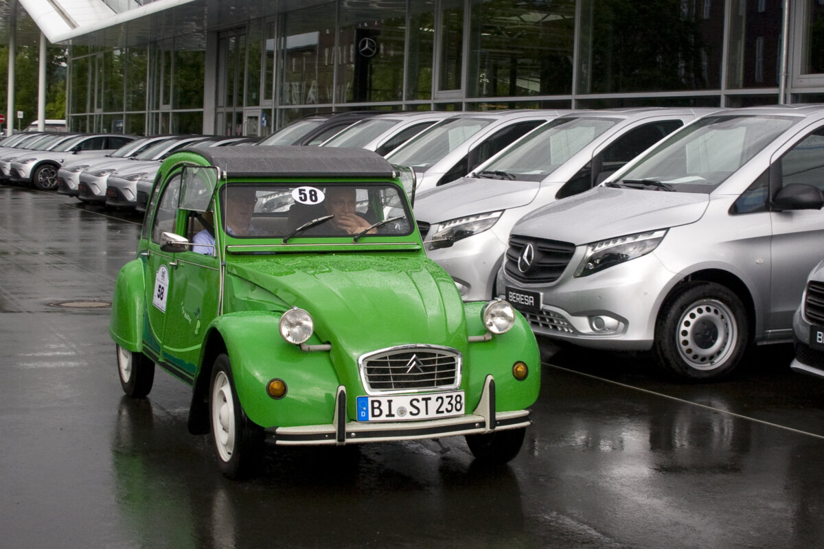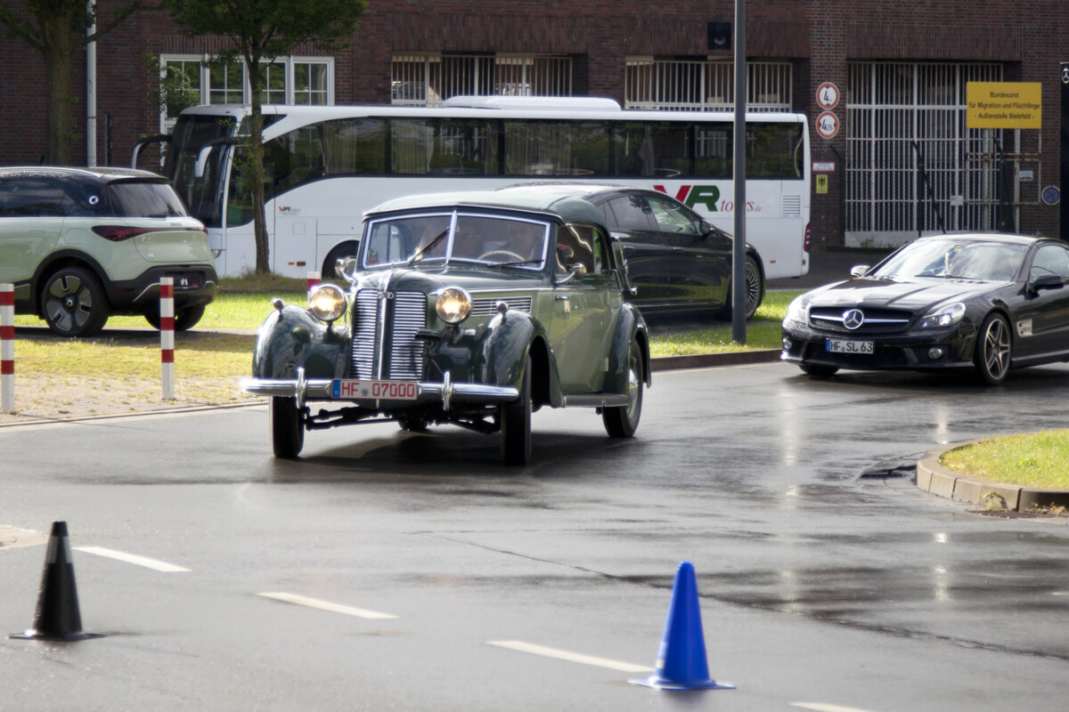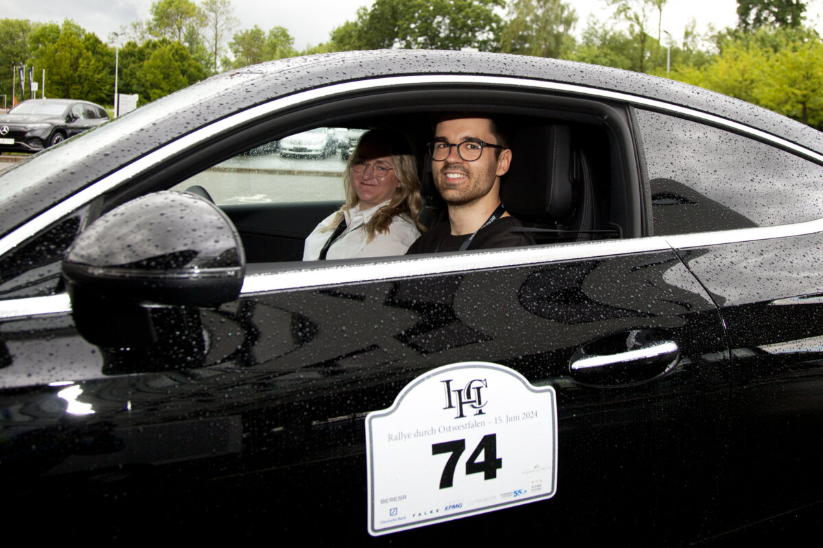 Der strömende Regen beim Start konnte niemandem die gute Laune verderben. Schon lange hatten sich die Teilnehmerinnen und Teilnehmer auf die 13. IHC-Rallye gefreut, die am 15. Juni 2024 stattfand. Pünktlich um 9.01 Uhr nach dem Frühstück rollte das erste Fahrzeug vom Start- und Zielpunkt Beresa in Bielefeld auf die Strecke.