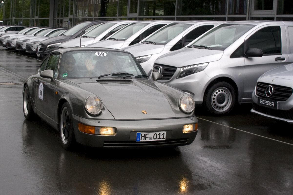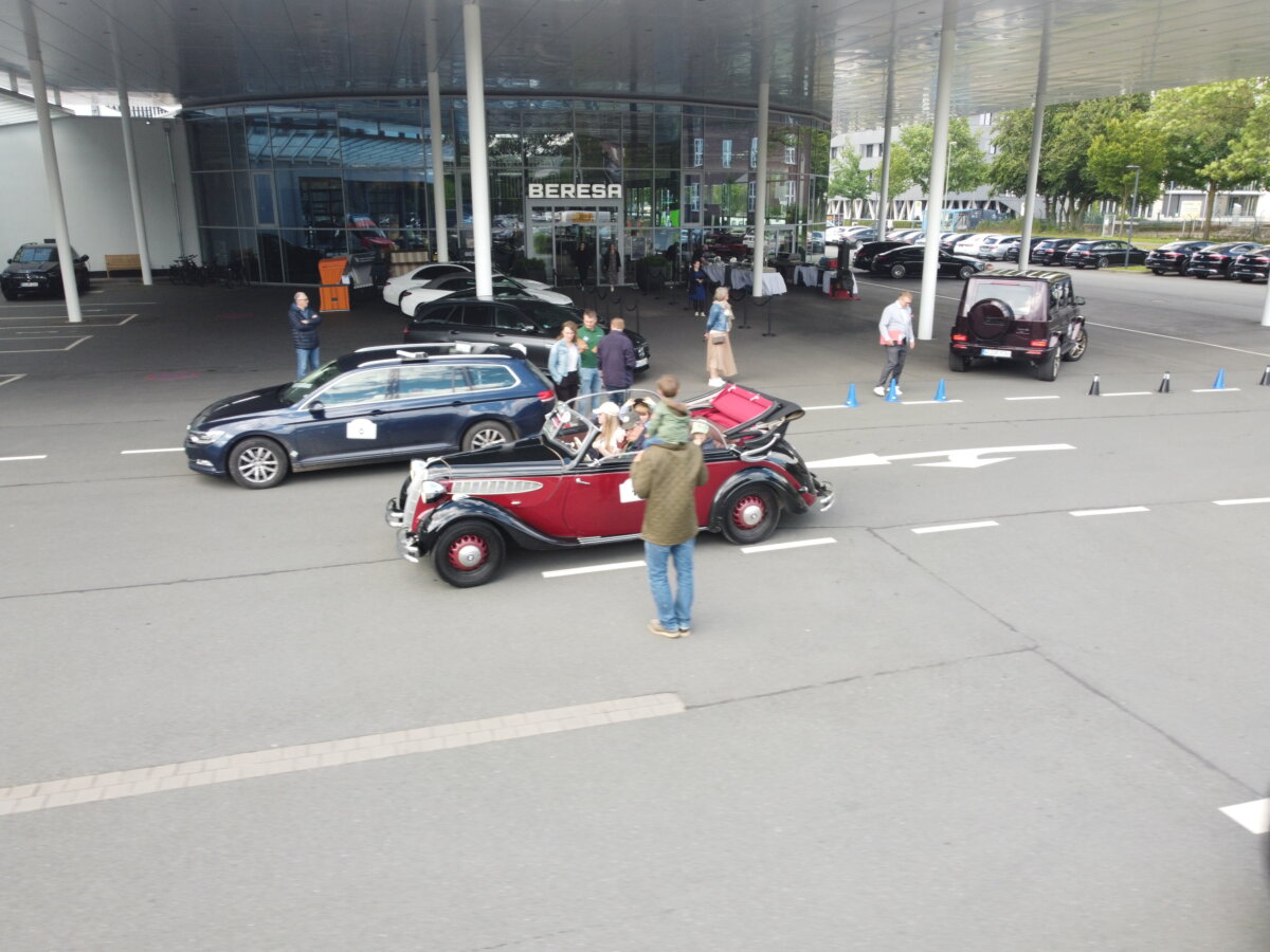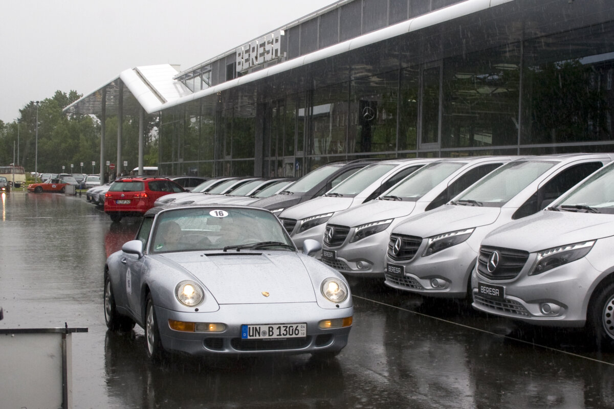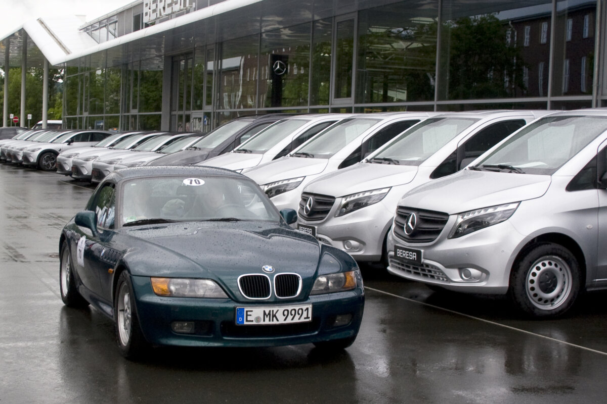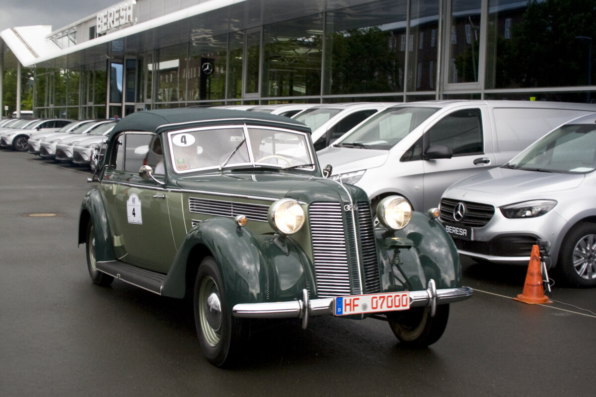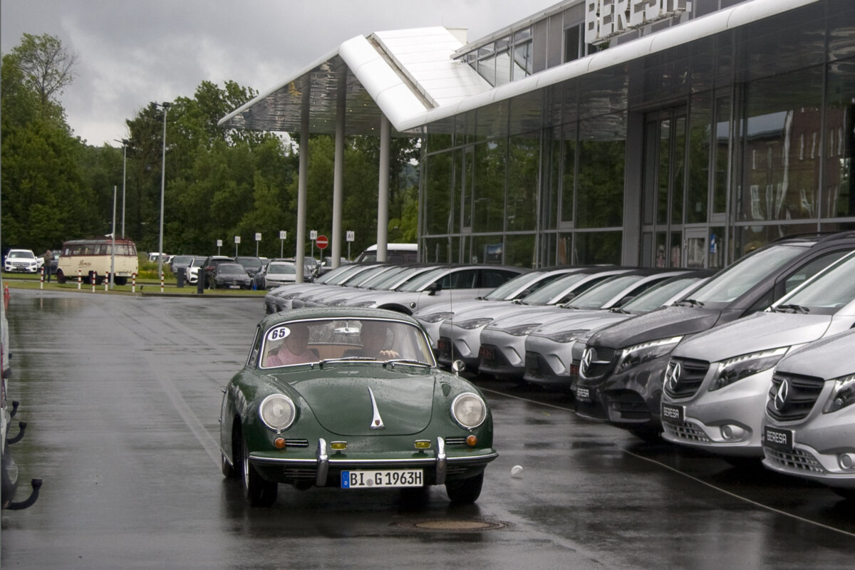 Der strömende Regen beim Start konnte niemandem die gute Laune verderben. Schon lange hatten sich die Teilnehmerinnen und Teilnehmer auf die 13. IHC-Rallye gefreut, die am 15. Juni 2024 stattfand. Pünktlich um 9.01 Uhr nach dem Frühstück rollte das erste Fahrzeug vom Start- und Zielpunkt Beresa in Bielefeld auf die Strecke.