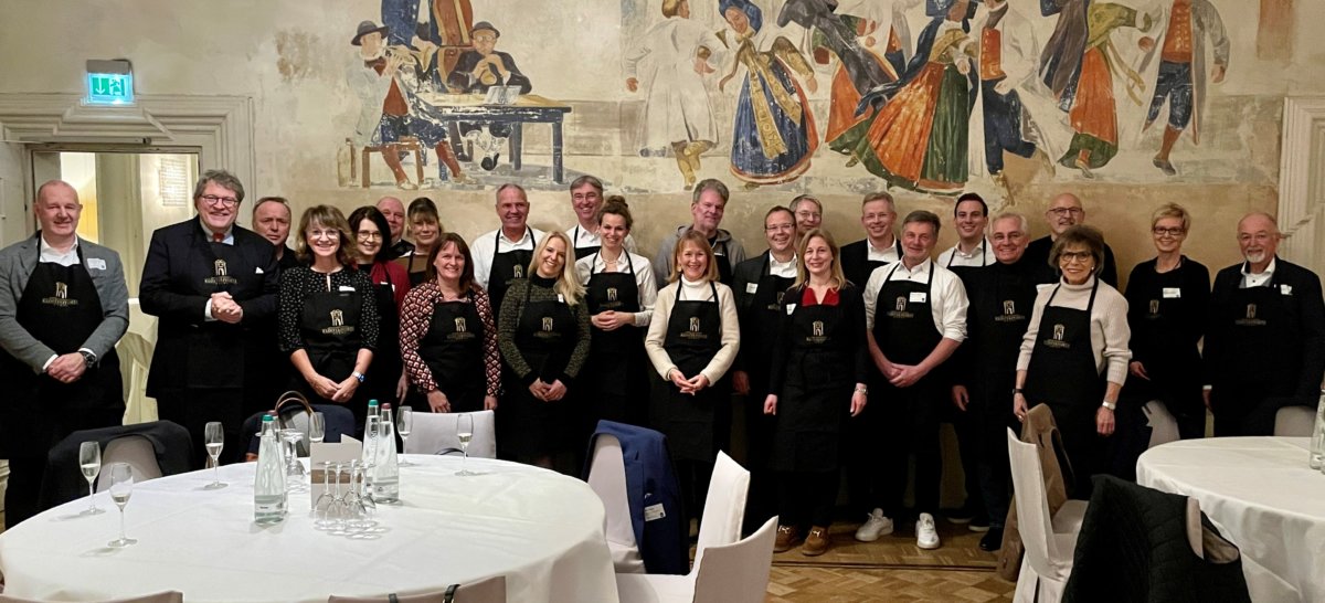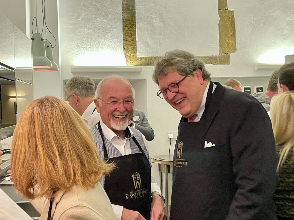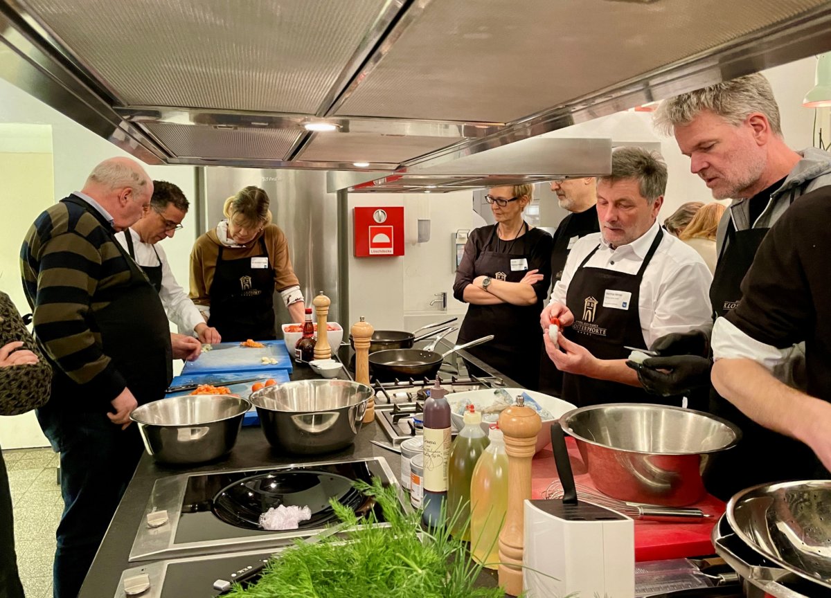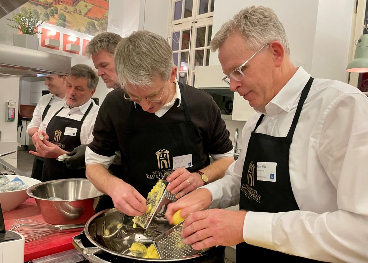 Zum gemeinsamen ersten Austausch des Jahres lud der Regionalkreis Gütersloh in die Hotel-Residence Klosterpforte in Marienfeld ein. 30 Teilnehmerinnen und Teilnehmer folgten der Einladung in die Kochschule in der Alten Abtei des Klosters. Neben dem Zubereiten köstlicher Speisen unter fachkundiger Anleitung mit Küchenchef Karsten Merker und Team, ging es wie gewohnt beim Regionaltreffen um den gemeinsamen Austausch. Das dies auch in diesem Rahmen hervorragend gelingen kann, zeigte die angeregte Stimmung untereinander und die Freude unter den Gästen, die herzlich von Dr. Reinhard Zinkann, Vorsitzender des IHC-Beirates, empfangen wurden.