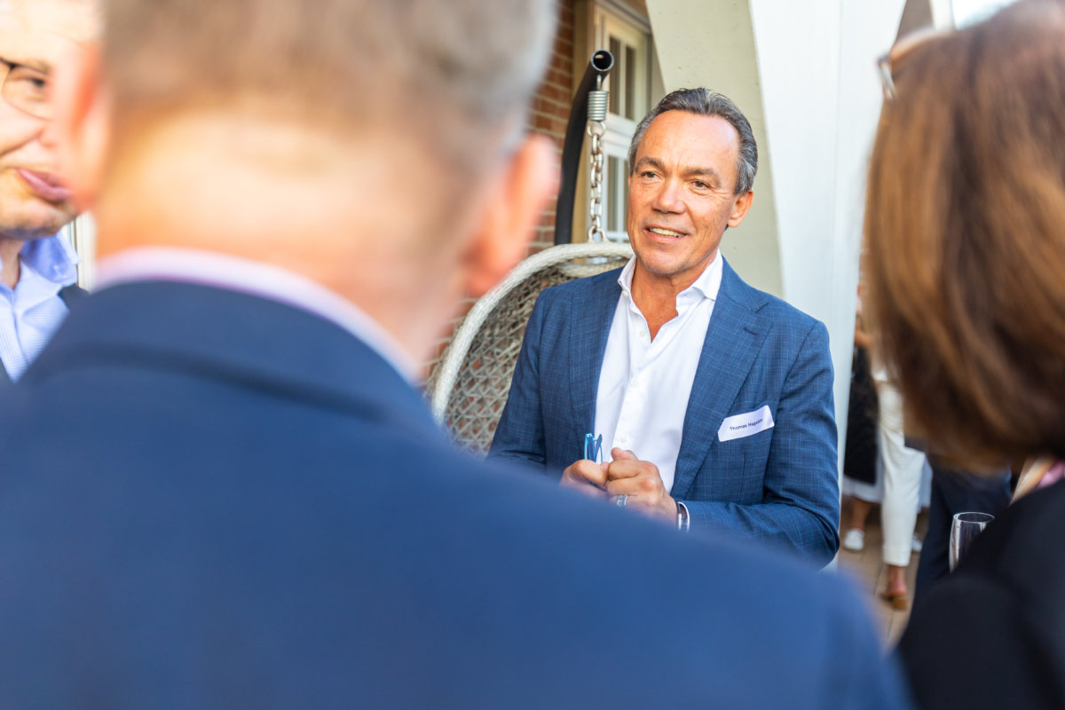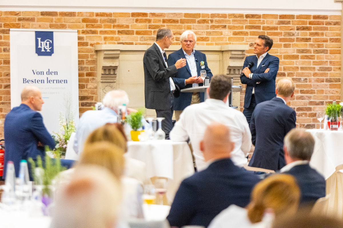 Die freie Platzwahl, in der Lounge, Kaminbar auf der Terrasse an großen geselligen Rund- oder Hochtischen, bei sommerlichen Speisen und Getränken trug zu einem gelungenen Abend bei. Auf das Grußwort des Präsidenten Eduard R. Dörrenberg folgte eine kurze interessante Gesprächsrunde mit Präsidiumskollegen Christoph Mohn, Vorsitzender des Aufsichtsrates Bertelsmann SE & Co. KGaA, und Hans Beckhoff, Geschäftsführender Gesellschafter Beckhoff Automation GmbH & Co. KG, über Deutschland und der Welt und deren wirtschaftlichen Betrachtungen. Diese Veranstaltung wurde erstmals ermöglicht durch das Sponsoring von Prooffice, Roland Fellmer. Der IHC bedankt sich sehr herzlich für die tolle Unterstützung.