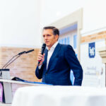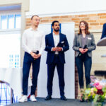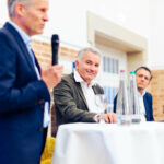 Moderiert von Eduard R. Dörrenberg erinnerte sich das Quartett an den ersten Arbeitstag im Unternehmen, sprach über wirtschaftliche Herausforderungen und Wünsche für die Zukunft. So unterschiedlich wie die von den Wirtschaftsführern vertretenen Branchen (Kosmetik und Medizinprodukte, Verbindungstechnik, Fashion-Dienstleister und Bauwirtschaft), so differenziert fielen auch die Statements aus. So spielt das Thema Nachhaltigkeit für alle Unternehmen eine wichtige Rolle, stellt aber für den Textilhandel eine besondere Herausforderung dar, wie Daniel Terberger erläuterte. Das Wesen der Mode, so der KATAG-Chef, liege in ihrem ständigen Wandel. „Ich verkaufe den Menschen neue Produkte, auch wenn die alten noch lange nicht kaputt sind“. Einig war sich das Quartett in der Forderung nach weniger Bürokratie und mehr Anstrengung im Bereich der Digitalisierung in Deutschland. Trotz schwieriger wirtschaftlicher Rahmenbedingungen und Fachkräftemangel blicken aber alle vier Unternehmer optimistisch in die Zukunft. Als langjährig tätige Familienunternehmer haben alle vier schon so manche Krise bewältigt. Auch wenn sich manches ändern müsse: „Wir leben doch in einem tollen Land“, so Jan-Uwe Goldbeck abschließend.