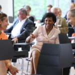 In ihrem Vortrag teilte Guillaume-Grabisch die Zeit in eine Vor- und eine Nach-Corona-Periode ein: Vor Corona, so die Expertin, dachten alle, wir wären auf dem guten Weg: Die Arbeitslosigkeit war global auf einem Abwärtstrend, Umweltthemen wurden angegangen, Armut milderte sich und auch die Geschlechtergleichstellung sei auf dem guten Weg, gewesen. Nach Corona hätten sich viele dieser Trends ins Negative gedreht. Allein bei der Durchsetzung der Gleichberechtigung von Männern und Frauen seien durch die Pandemie 20 Jahre verloren gegangen, so Guillaume-Grabisch. Menschen fühlten sich nach Corona unglücklicher und auf politischer Ebene seien Demokratie und Menschenrechte gefährdeter denn je. Corona sei also in jeder Hinsicht ein „Game-Changer“ gewesen.
