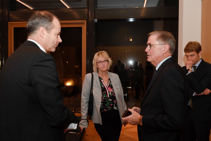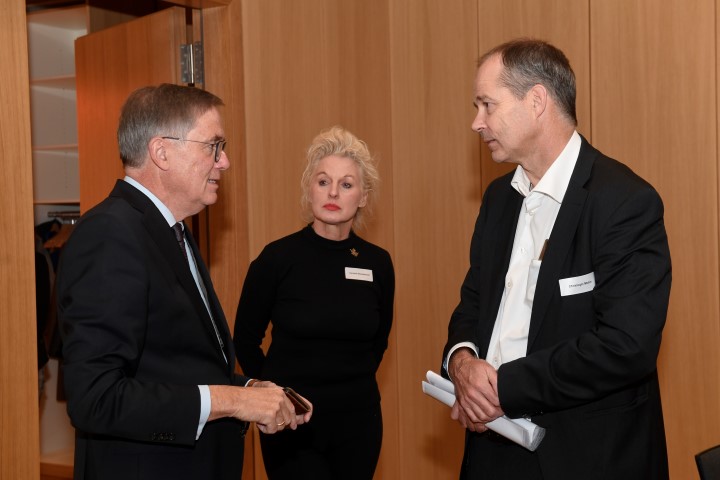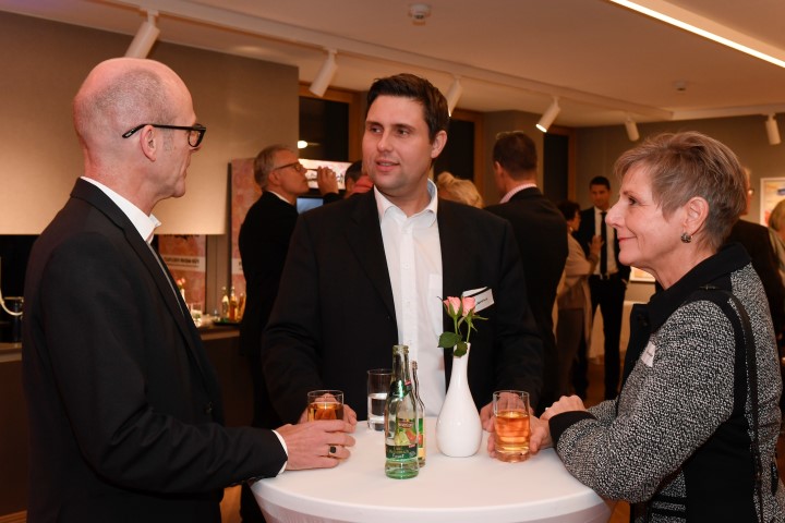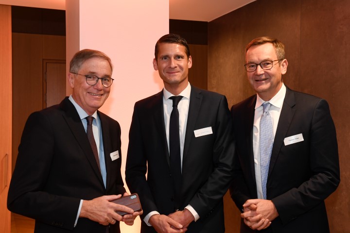 „Im Notfall nicht zögern und 112 wählen!“, denn schnelle Hilfe rettet Leben: Referent Dr. Michael Brinkmeier (M.), Gastgeber Thomas Sterthoff, Vorstandsvorsitzender der Volksbank Bielefeld-Gütersloh eG (l.) und IHC Präsidiumsmitglied Christoph Mohn (r.)