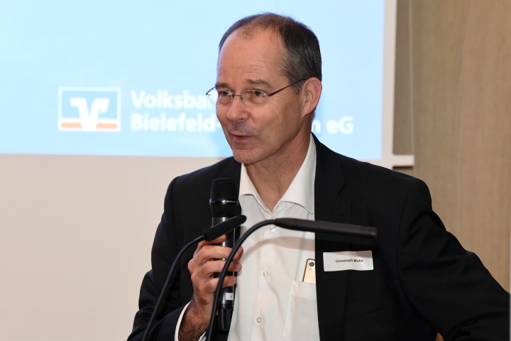 „Dank der Arbeit der Stiftung hat sich dies deutlich geändert“, erläuterte Dr. Michael Brinkmeier, Vorstandsvorsitzender der Stiftung Deutsche Schlaganfall-Hilfe, den Mitgliedern des IHC und zahlreichen Gästen. So seien die Chancen, nach einem Schlaganfall zu überleben, durch die Fortschritte in Medizin und Versorgung deutlich gestiegen. Mittlerweile gibt es – auf Initiative der Stiftung – deutschlandweit mehr als 300 Schlaganfall-Spezialstationen in Krankenhäusern, sogenannte „Stroke Units“. Sie gewährleisten eine schnelle, wohnortnahe Akutversorgung. Denn im Fall des Falles zählt jede Minute. „Zögern Sie nicht, bei den geringsten Anzeichen die 112 zu wählen“, mahnte Brinkmeier – wohlwissend, dass der Ostwestfale oder die Ostwestfälin einen Arztbesuch gerne mal auf den nächsten Morgen verschieben. Doch das sei grundfalsch: „Es gibt ein Zeitfenster von 4,5 Stunden. Je schneller ein Schlaganfall behandelt wird, desto höher ist die Chance, bleibende Schädigungen zu vermeiden!“