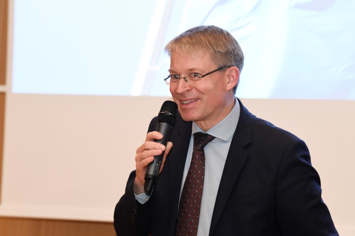 Mit dem Vorurteil, dass Schlaganfälle nur ein Thema für ältere Menschen seien, räumte IHC Präsidiumsmitglied Christoph Mohn bereits in seiner Anmoderation des Vortrags auf. Zwar machen die über 60-Jährigen den Großteil der Erkrankten aus, doch auch jüngere Erwachsene, Kinder und sogar Babys im Mutterleib können einen Schlaganfall erleiden. „Achten Sie auf Ihren Blutdruck“, gab Brinkmeier den Zuhörenden mit auf den Weg. Denn Bluthochdruck sei neben zu wenig Bewegung, Rauchen und ungesunder Ernährung eine der Hauptursachen für Schlaganfälle. Und dann folgte noch ein Vorschlag für das bevorstehende Weihnachtsfest: „Lassen Sie sich ein Blutdruckmessgerät schenken…“