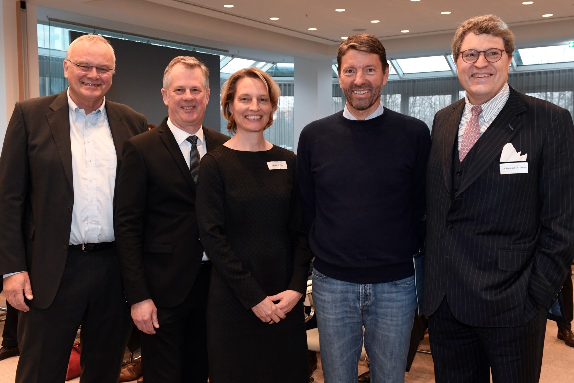 „Mit Sport können wir Leben verändern – das ist unsere Überzeugung“: adidas Chef Kaper Rorsted zu Gast beim IHC. Im Bild (v.l.) IHC Beiratsvorsitzender Dirk U. Hindrichs, Gastgeber Michael Fröhlich, Vorstandsvorsitzender Sparkasse Bielefeld, Jennifer Erdmann, Vorstandsmitglied Sparkasse Bielefeld, der Referent Kasper Rorsted und IHC Präsident Reinhard Ch. Zinkann.