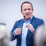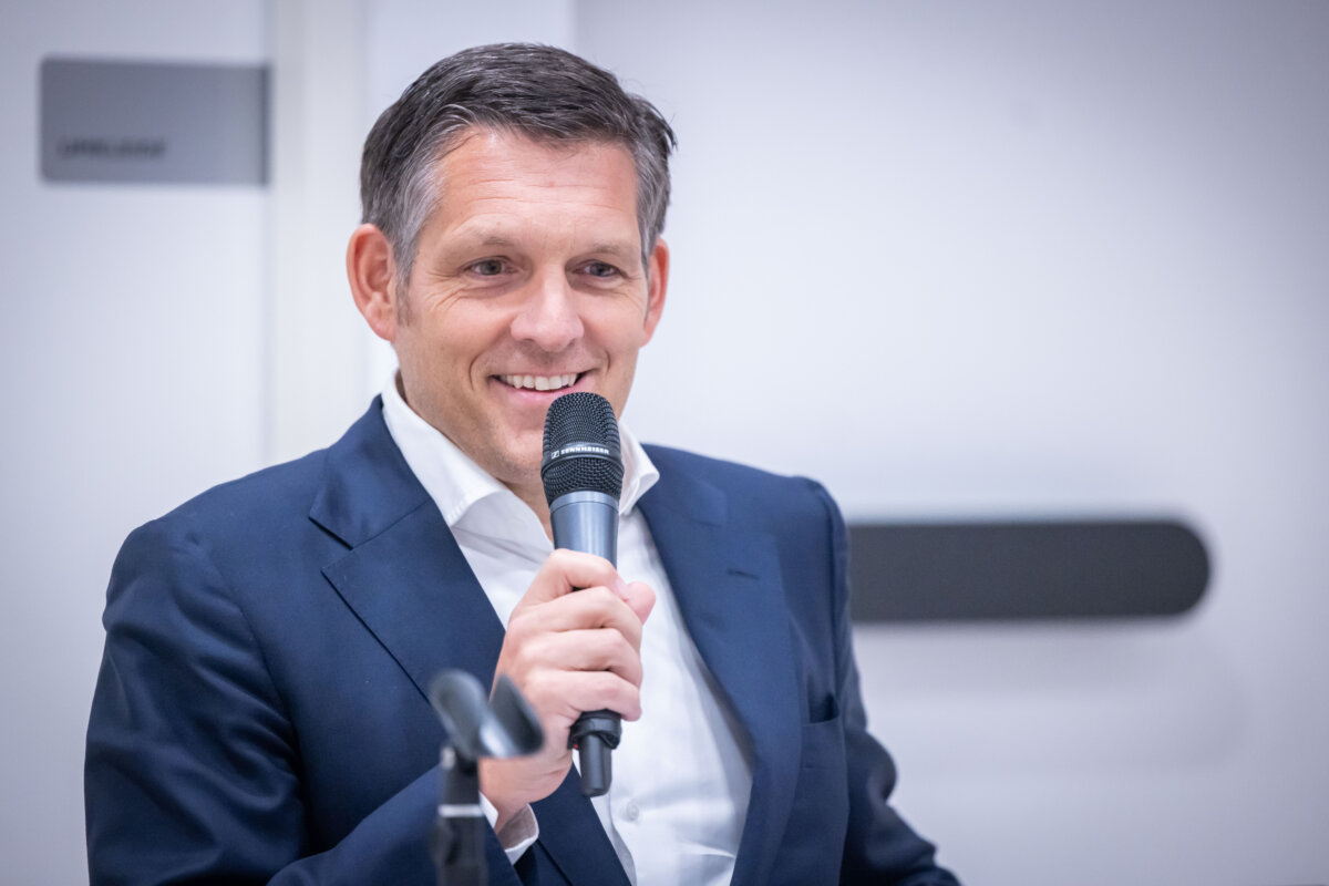 „Die Digitalisierung verändert unser Geschäftsmodell massiv“, erklärte Loos. „Einerseits wollen wir unser unternehmerisches Erbe pflegen und weiterhin von Montag bis Freitag auf der Baustelle beraten und Lösungen anbieten, anderseits sehen wir die Innovationen der Zukunft vor allem im digitalen Bereich“. „Die Baubranche steht vor enormen Herausforderungen“, so Loos. Veraltete Arbeitsmethoden, Fachkräftemangel und eine schlechte Öko- und Gesundheitsbilanz bewirkten einen enormen Transformationsdruck. „Wir wollen Produktivitätspartner sein, um unseren Kunden zu helfen, ihre Prozesse rund um das Bauen zu optimieren“, so Loos. Als Beispiel dafür nannte er das Werkzeugleasing, welches die Kunden stets mit der aktuellen Gerätetechnik ausrüste. Dazu zählten aber auch Software zum Baustellenmanagement, Betriebsmittelverwaltung oder Personaleinsatzplanung. Wurde die Software früher als Zugabe zum Hardwareprodukt geliefert, entwickele sie sich mittlerweile zum unabhängigen Produkt.