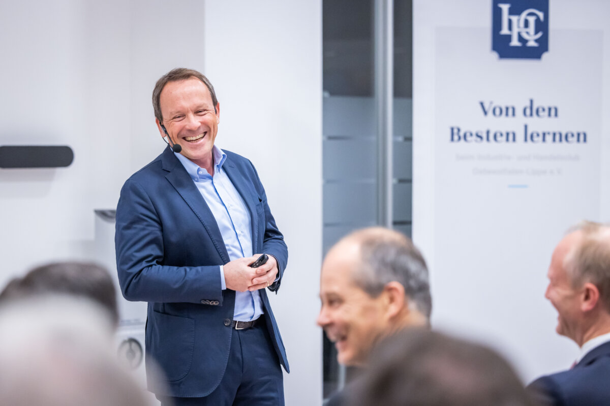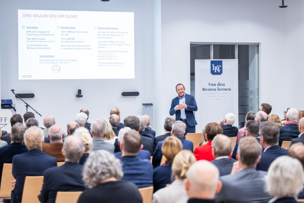 Die roten Werkzeugkoffer mit dem weißen Hilti-Schriftzug hat wohl jeder schon einmal gesehen. Dass die Hilti Group mittlerweile ein ganz anderes Geschäftsmodell als nur den Verkauf von Bohrhämmern und Schleifmaschinen verfolgt, ist weniger bekannt. Dr. Christoph Loos, ehemaliger CEO und jetziger Präsident des Hilti-Verwaltungsrats, erläuterte die langfristige Strategie des Liechtensteiner Unternehmens. Gastgeber und Moderator der gut besuchten Veranstaltung im Dr. Wolff Institut war IHC-Präsident Eduard R. Dörrenberg.