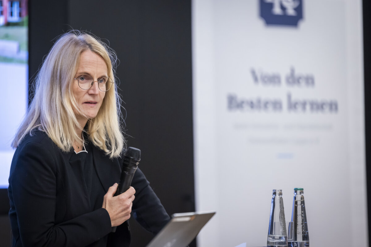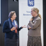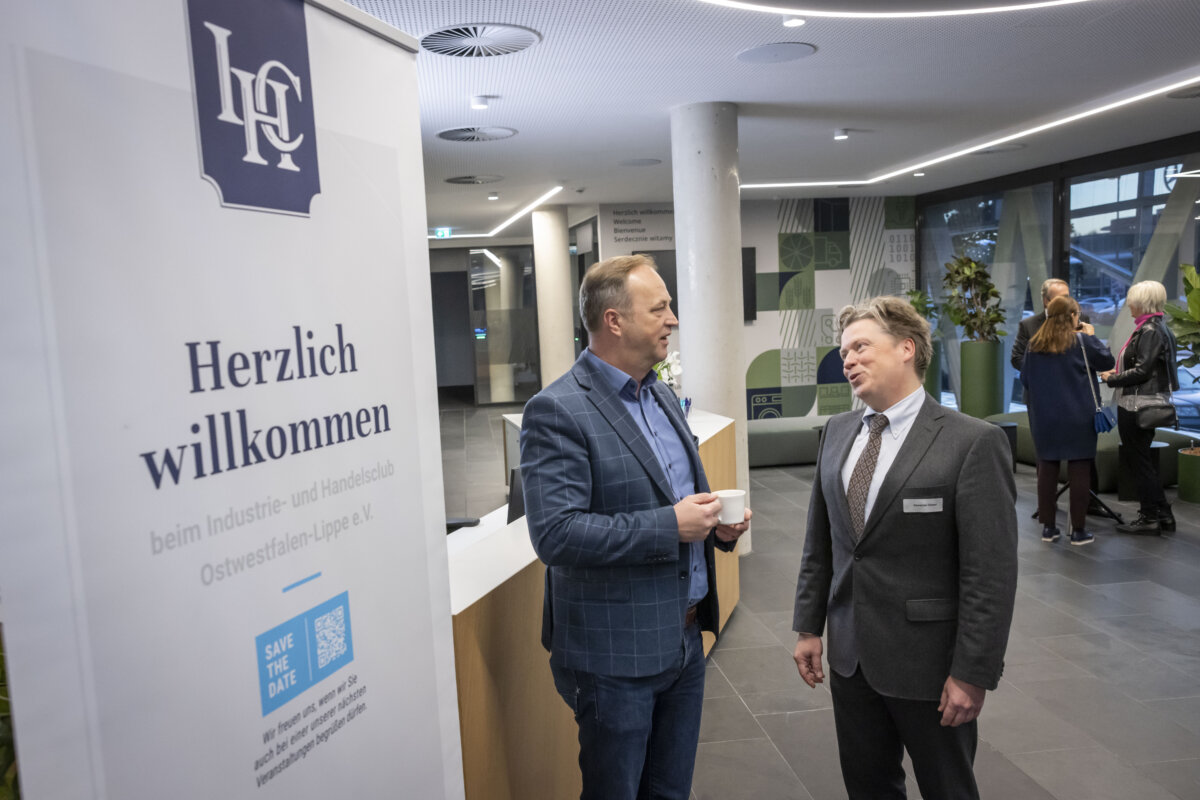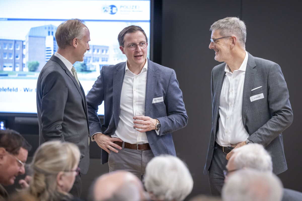 In der anschließenden Diskussion, moderiert von IHC-Präsidiumsmitglied Laura von Schubert, ging Sandra Müller-Steinhauer auch auf die aktuellen Herausforderungen der Polizei in Bielefeld ein. Als Schwerpunkte der Polizeiarbeit nannte die Polizeipräsidentin die Sicherheit in der Bielefelder Innenstadt, den Kindesmissbrauch und die in der Schwere der Straftaten zunehmende Kinder- und Jugendkriminalität. Trotz 24 261 angezeigter Straftaten in Jahr 2022 zähle Bielefeld aber immer noch zu den sichersten Großstädten in Deutschland.