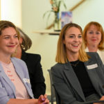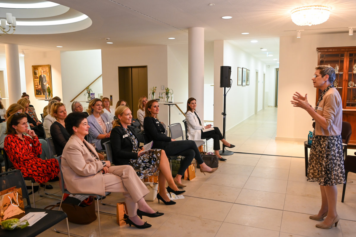 Nur 19 Prozent der DAX-Vorstände seien Frauen, trotz 2021 eingeführter Frauenquote. In den Familienunternehmen liege der Anteil bei etwa sieben Prozent. „Das müssen wir aufbrechen“, sagte Menne. Auch sie habe lange gehofft, dass sich ohne eine Frauenquote etwas ändern würde, doch sei dies nicht passiert. Ohne Quote stagniere der Frauenanteil in Vorständen bei zehn Prozent. „Aber unter 30 Prozent wird man nicht gehört“, so Menne. Das sei kein spezielles Frauen- sondern ein Minderheitenproblem. „Scheuen Sie sich also nicht, Quotenfrau zu sein, sondern nutzen Sie diese Position und stellen Sie andere Frauen ein“, lautete ihr Aufruf an die Anwesenden.