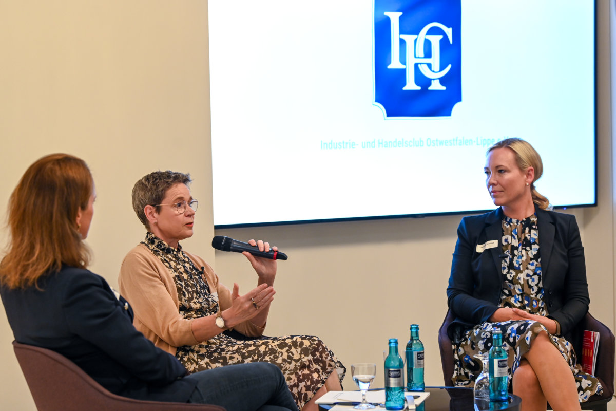 Ca. 16 Prozent beträgt der Frauenanteil im Industrie- und Handelsclub OWL, IHC. Dies zu ändern hat sich das NetzwerkF, das Frauennetzwerk des IHC, auf die Fahnen geschrieben. Die IHC-Präsidiumsmitglieder und NetzwerkF-Verantwortlichen Verena Pausder und Laura von Schubert hatten darum alle weiblichen IHC-Mitglieder sowie Gründerinnen und weitere Interessentinnen zu einer Veranstaltung in die Hauck Aufhäuser Lampe Privatbank eingeladen. Unter dem Motto „NetzwerkF – Wer wollen wir sein und wo wollen wir hin?“ wurden zunächst die Wünsche und Ideen diskutiert, bevor die Gastrednerin des Abends, Simone Menne, den Impulsvortrag hielt.