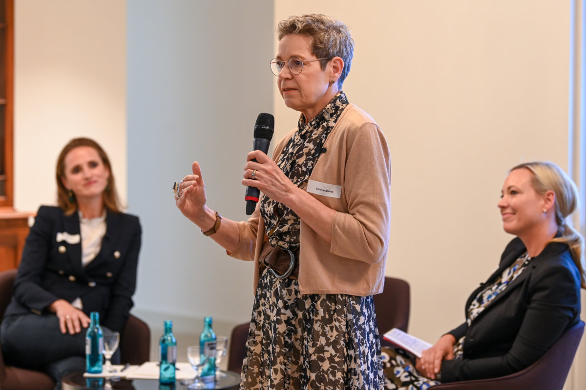 Wie bekommen Frauen in der Wirtschaft mehr Sichtbarkeit und wie können sie sich unterstützen? Simone Menne, ehemalige CFO der Lufthansa, Aufsichtsrätin, Galeristin und seit kurzem Grünen-Mitglied, warb eindringlich dafür, aktiv an einer divers aufgestellten Wirtschaft zu arbeiten. „Es geht nicht darum, ob wir es wollen. Wir müssen es tun, ansonsten wird sich die Gesellschaft nicht verändern“, erklärte die Managerin.