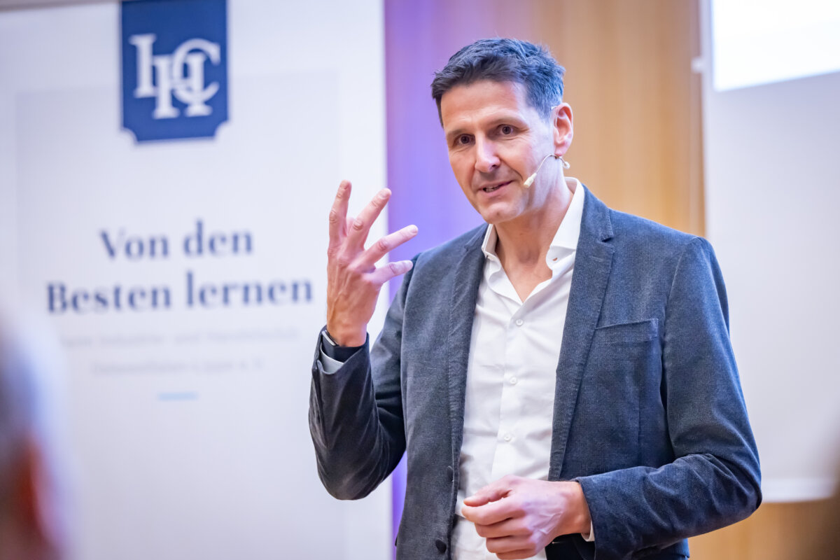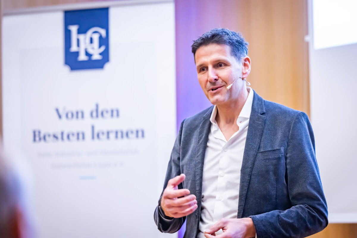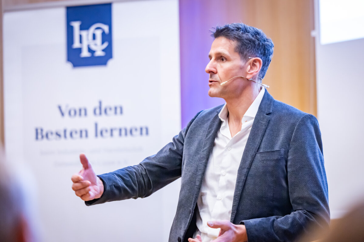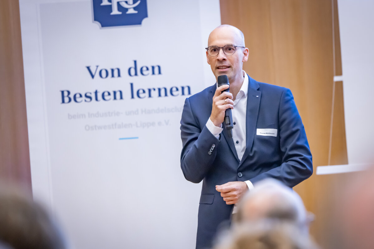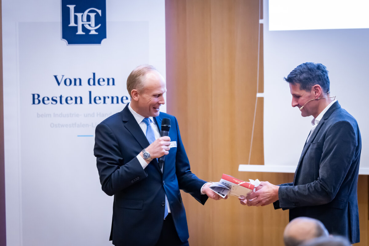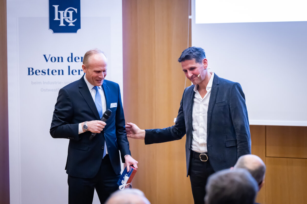 „Das war ein fantastischer Start: eine richtige Neujahrsansprache!“, fasste IHC Präsidiumsmitglied Dr. Harald Schlüter erfreut die erste Vortrags- und Diskussionsveranstaltung des Industrie- und Handelsclubs OWL zusammen. Gastredner in den Räumen der „Volksbank in Ostwestfalen“ am Bielefelder Kesselbrink war Andreas Urschitz. Der Manager ist Mitglied des Vorstands von Infineon Technologies AG und als Chief Marketing Officer seit 2022 verantwortlich für das Marketing des Konzerns. Der deutsche Halbleiterhersteller entstand im Jahr 1999 durch die Ausgliederung des Halbleitergeschäfts von Siemens. Mit rund 58.000 Mitarbeitern erzielte Infineon im Geschäftsjahr 2024 einen Umsatz von 14,96 Milliarden Euro.