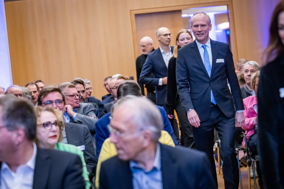 In einer Tour d‘Horizon zog der Gast zunächst eine Bilanz der aktuellen Herausforderungen: von geopolitischen Verwerfungen und Klimawandel, über soziale Probleme durch Migration und Armut hin zu rasanten technischen Weiterentwicklungen. „Auch wenn die Probleme groß sind, möchte ich Zuversicht säen“, so Urschitz und gab sich optimistisch. Den Umstieg auf „grüne“, nachhaltige Technologie wertete er als „Wachstumsbooster“ für Jobs und Wirtschaft. Als Teil einer Lösung empfahl er, hierzulande „die Innovationsgeschwindigkeit zu erhöhen“ und entschlossener Entscheidungen zu treffen, um im internationalen Markt mithalten zu können.