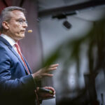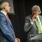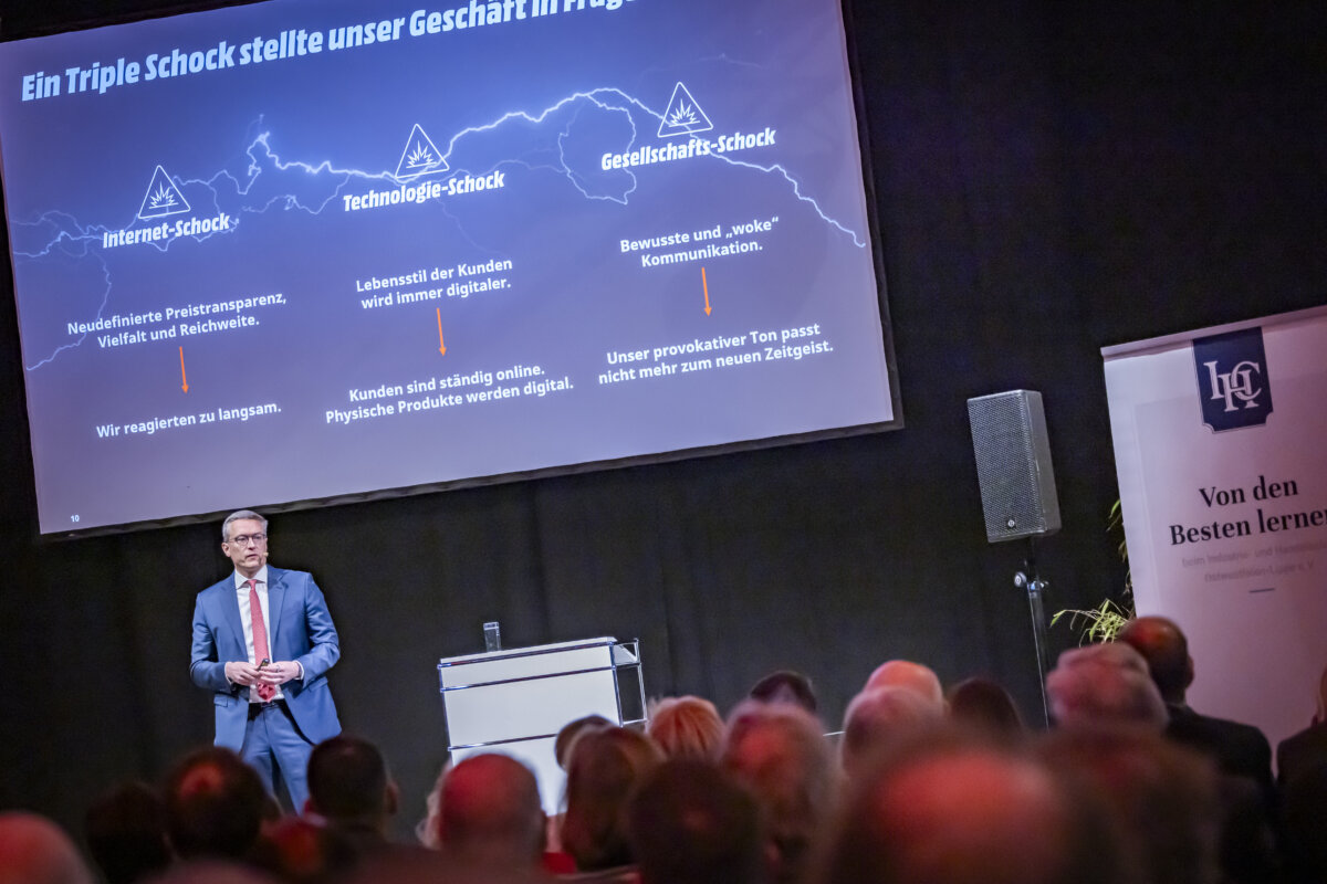 Rot-weiße Werbeplakate, die auf Sonderangebote hinweisen, Berge von Elektrogeräten auf Paletten, riesige Ladengeschäfte am Stadtrand – so kennt man den Elektrofilialisten Mediamarkt. Geht es nach Karsten Wildberger sollen die Kunden künftig beim Namen „Mediamarkt“ aber nicht mehr nur an günstige Preise denken, sondern an besondere Serviceerlebnisse: angefangen bei der persönlichen Beratung, über die schnelle Lieferung bis hin zur Reparatur oder Inzahlungnahme gebrauchter Ware. Über den Wandel vom klassischen Einzelhändler hin zur Omnichannel-Serviceplattform sprach der CEO des Mediamarkt- und Saturn-Mutterkonzerns Ceconomy kürzlich auf Einladung des Industrie- und Handelsclubs OWL, IHC. IHC Mitglieder und Gäste waren ins Bielefelder Lenkwerk gekommen, um den Ausführungen des promovierten Physikers und ehemaligen Eon-Vorstands zuzuhören. Moderator des Abends war IHC Präsidiumsmitglied Hans Beckhoff.