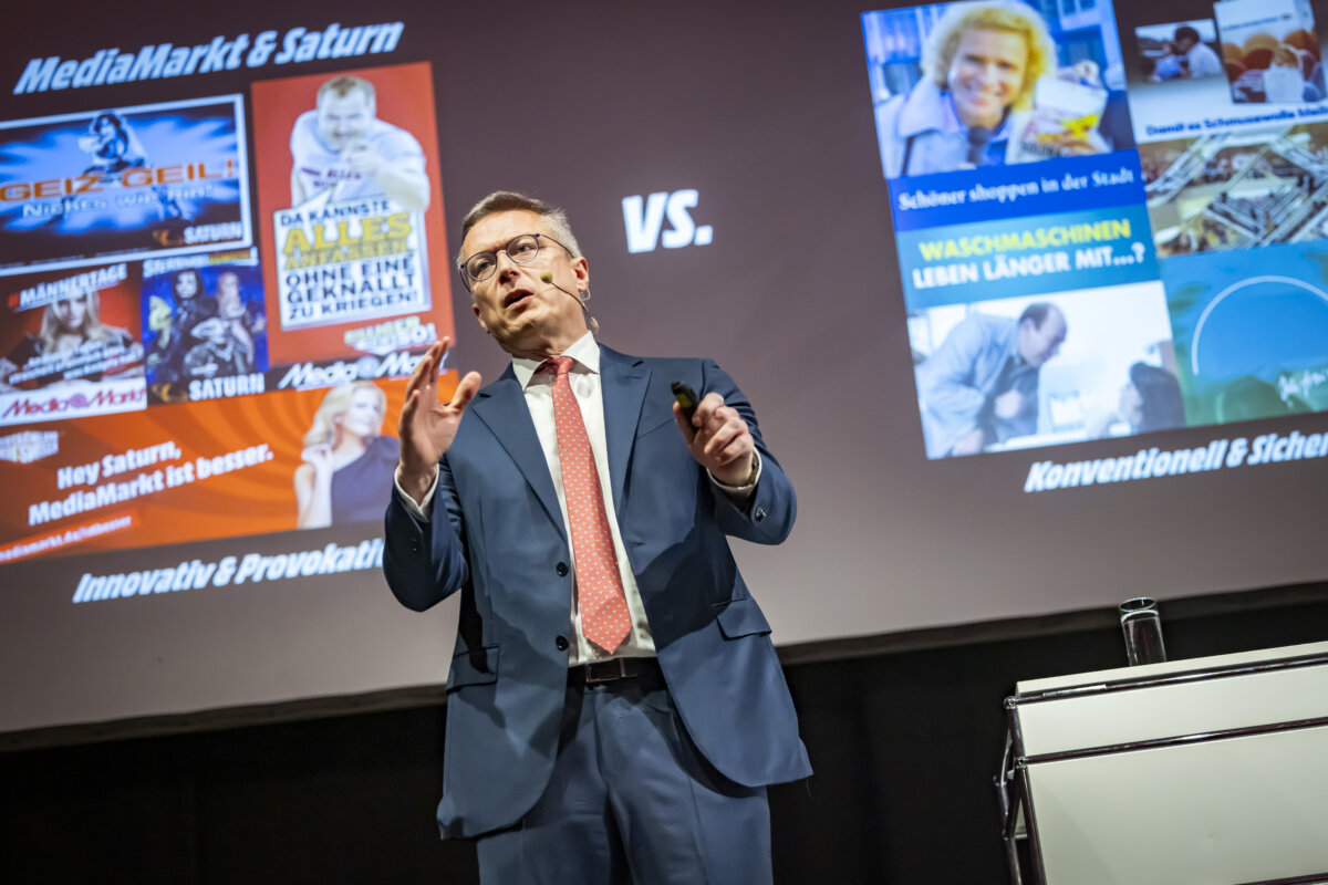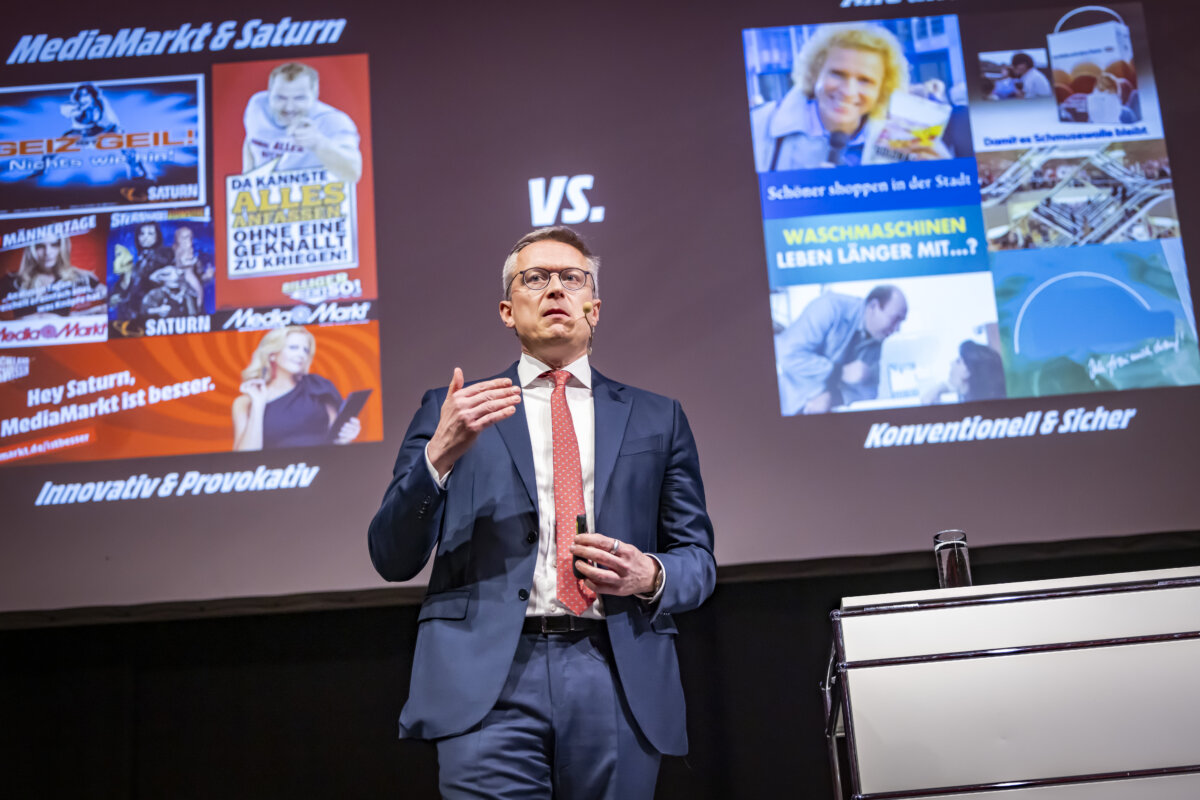 Mit 22 Milliarden Euro Umsatz, 50.000 Mitarbeitenden und mehr als 1000 Geschäften in elf Ländern bilden MediaMarkt und Saturn Europas größte Elektronik-Fachmarktkette. Dennoch, so Wildberger, habe die Gruppe lange versäumt, sich an das geänderte Konsumverhalten der Kundinnen und Kunden anzupassen. Das Online-Geschäft sei bis in die Corona-Zeit hinein stark vernachlässigt worden. Erst seit seinem Amtsantritt 2021 fahre Mediamarkt eine gezielte Omnichannel-Strategie. Mit Erfolg: „Im Schnitt 25 Prozent der Umsätze werden mittlerweile online erzielt“, berichtet Wildberger, unter dessen Leitung die Gruppe im Geschäftsjahr 2023/24 (per Ende September) ein Umsatzplus von 5,3 Prozent erwirtschaftete. Während das Branding der Marke „Mediamarkt“ unter Wildberger weiter ausgebaut wurde, ist die Zukunft der Marke „Saturn“ ungewiss. „Es sind beides starke Marken, doch die Differenzierung fehlt“, gab Wildberger zu bedenken. Saturn-Märkte gebe es zudem nur in Deutschland.