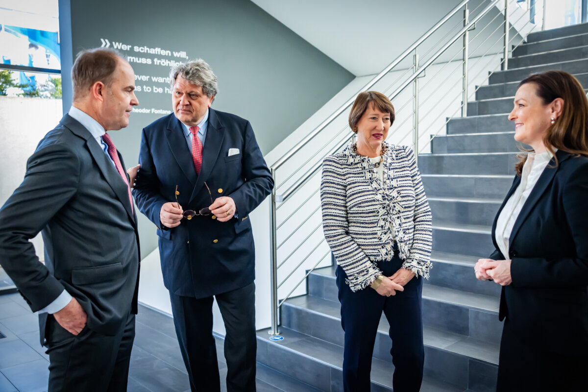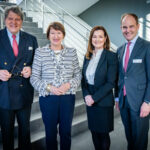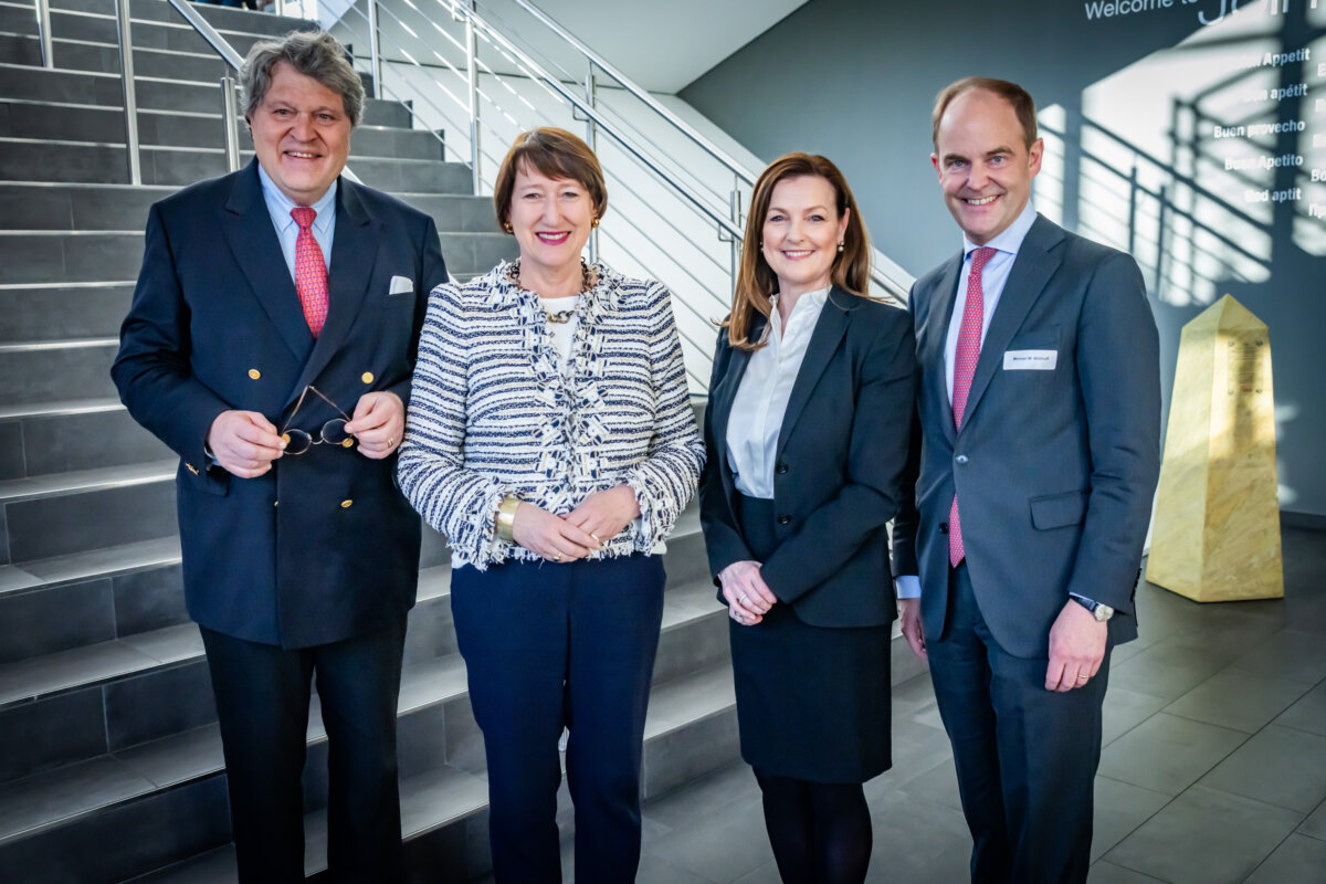 Hildegard Müller, Präsidentin des Verbandes der Automobilindustrie zu Gast beim IHC (v. l. IHC Ehrenpräsident Dr. Reinhard Zinkann, Hildegard Müller, IHC Geschäftsführerin Cornelia Moss, Gastgeber des Abends Michael W. Böllhoff)