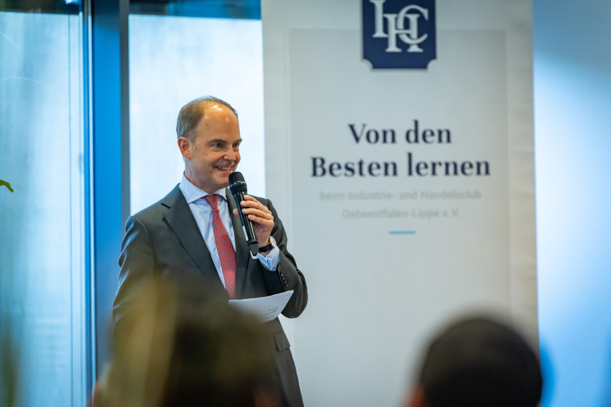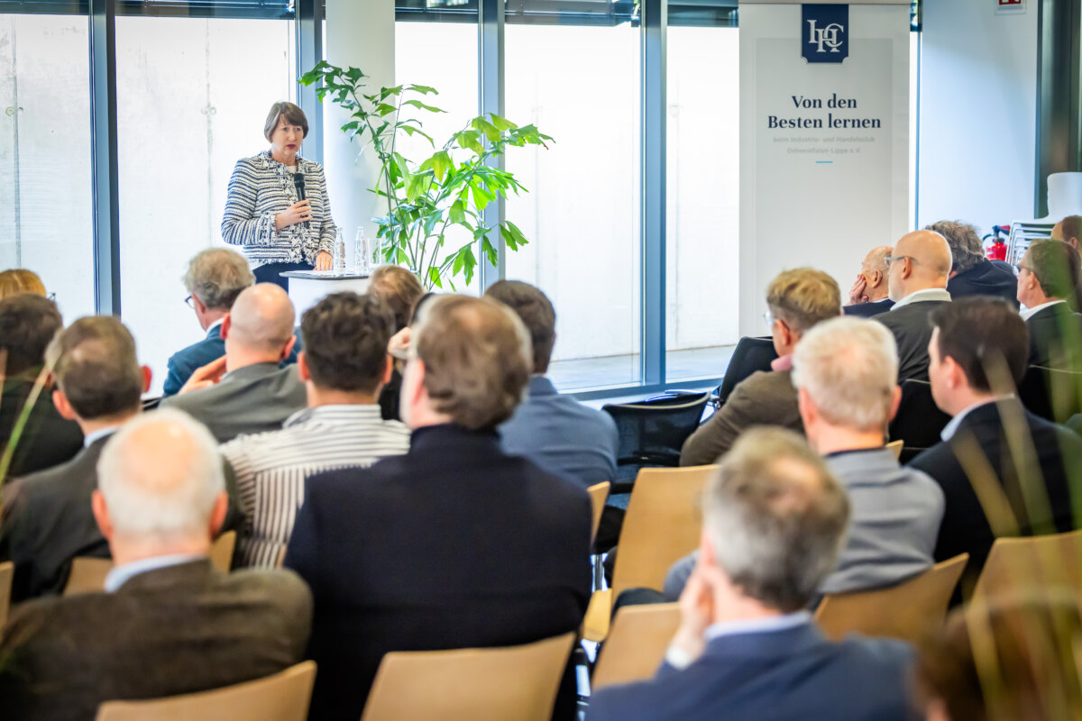 Die Autoindustrie in Deutschland befindet sich in einer Krise. Fast täglich gibt es neue Meldungen über Stellenabbau, Umstrukturierungen oder Werkschließungen bei Herstellern und Zulieferern. „An uns wir deutlich, was am Industriestandort Deutschland los ist“, erklärte Hildegard Müller. Die Präsidentin des Verbands der Autoindustrie, VDA, war Gast an einer Vortrags- und Diskussionsveranstaltung des Industrie- und Handelsclubs Ostwestfalen-Lippe, IHC. Moderiert wurde die Veranstaltung vom Gastgeber des Abends Michael W. Böllhoff, Geschäftsführender Gesellschafter der Böllhoff-Gruppe.