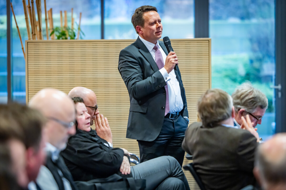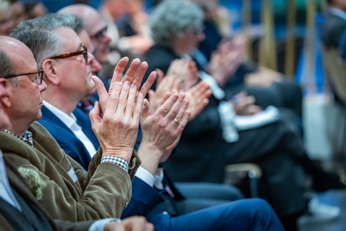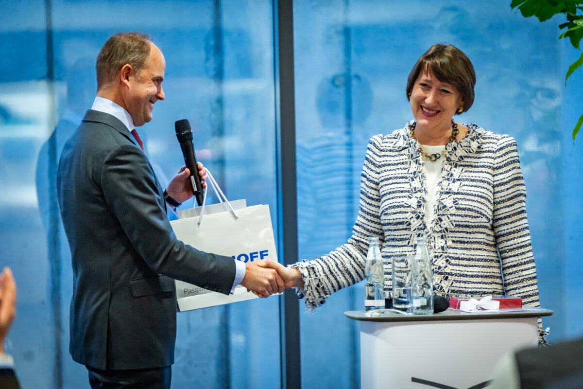 Von der Politik forderte sie darum vor allem wettbewerbsfähige Energiepreise, Entbürokratisierung und die Digitalisierung der Behörden, die auf diesem Gebiet Leistungen von den Unternehmen forderten, die sie selbst nicht erbrächten. Von den Unternehmerinnen und Unternehmern wünschte Müller sich, unternehmerische Risiken wieder vermehrt wahrzunehmen. Europa müsse sich auf seine wirtschaftliche Stärke besinnen. „Es gibt viel Innovationskraft in Deutschland und Europa“, so Müller, „lassen Sie uns diese für Wertschöpfung in Deutschland einsetzen.“