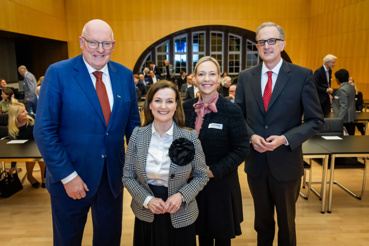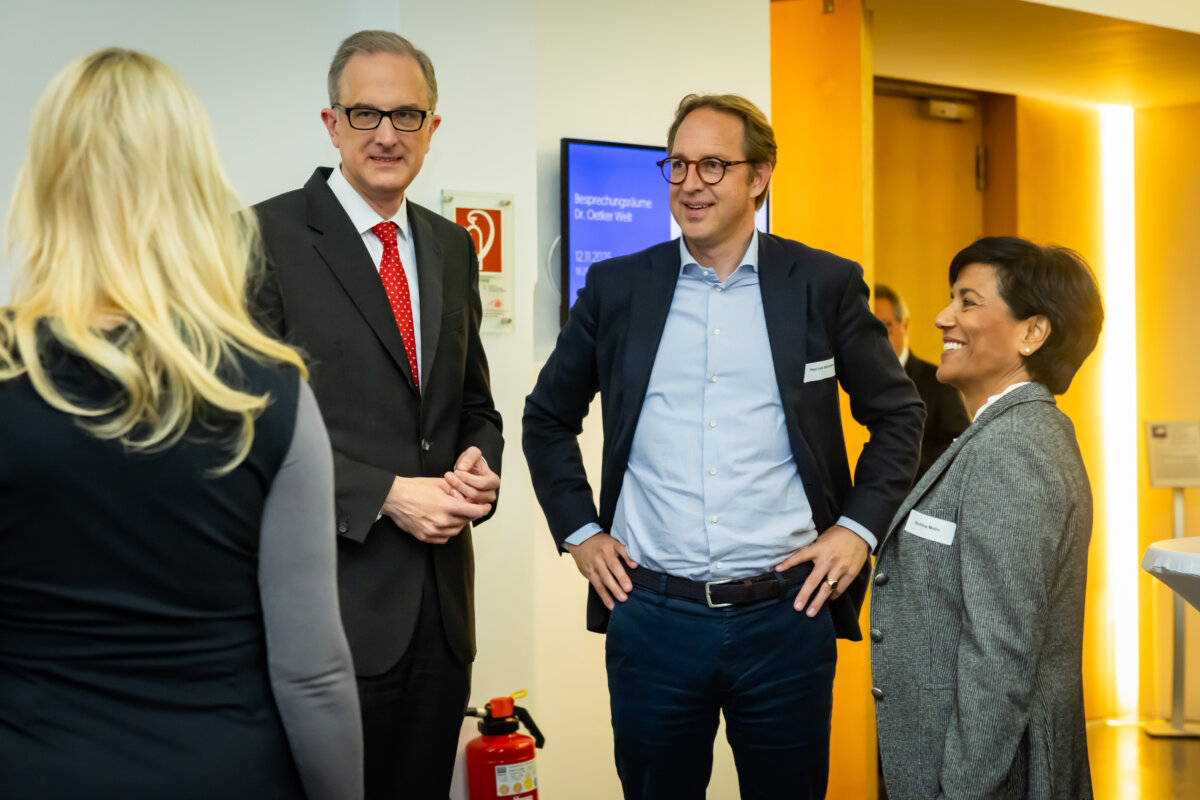 Thomas Kleine-Brockhoff, Direktor Deutsche Gesellschaft für Auswärtige Politik (DGAP) zu Gast beim IHC (v. l. Thomas Kleine-Brockhoff, IHC Geschäftsführerin Cornelia Moss, IHC Präsidiumsmitglied Laura von Schubert, Dr. Christian von Twickel, Geschäftsführung Dr. Oetker)