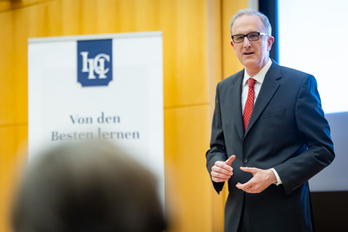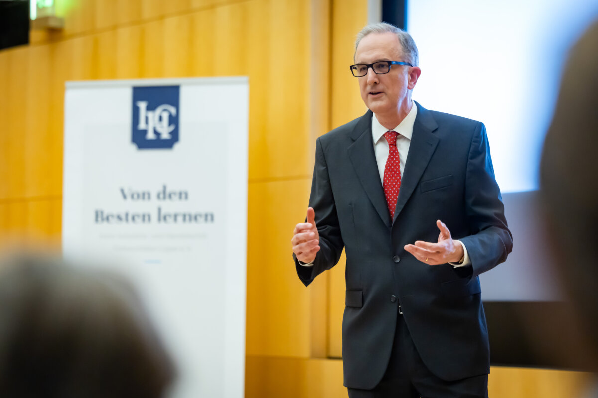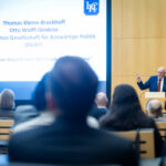 Ein „faszinierender Einblick in den Maschinenraum der Politik“ sei sein Vortrag gewesen, formulierte es Laura von Schubert, IHC Präsidiumsmitglied, am Ende der Vortrags- und Diskussionsveranstaltung, zu der zahlreiche Mitglieder und Gäste in die Dr. Oetker-Welt gekommen waren. Zuvor hatte Kleine-Brockhoff erläutert, warum Deutschland in seiner „größten außenpolitischen Krise seit Gründung der BRD“ einen neue Route weg von „reaktiver Krisenverwaltung“ hin zu „strategischer Zukunftsgestaltung“ einschlagen müsse. Unabdingbar sei dafür eine Nationale Risikoanalyse, an deren Gestaltung Kleine-Brockhoff zurzeit gemeinsam mit einem Think Tank arbeitet. Weitere Mitglieder sind Daniela Schwarzer (Bertelsmann Stiftung), Stefan Mair (Stiftung Wissenschaft und Politik) und Oliver Gnad (Bureau für Zeitgeschehen).