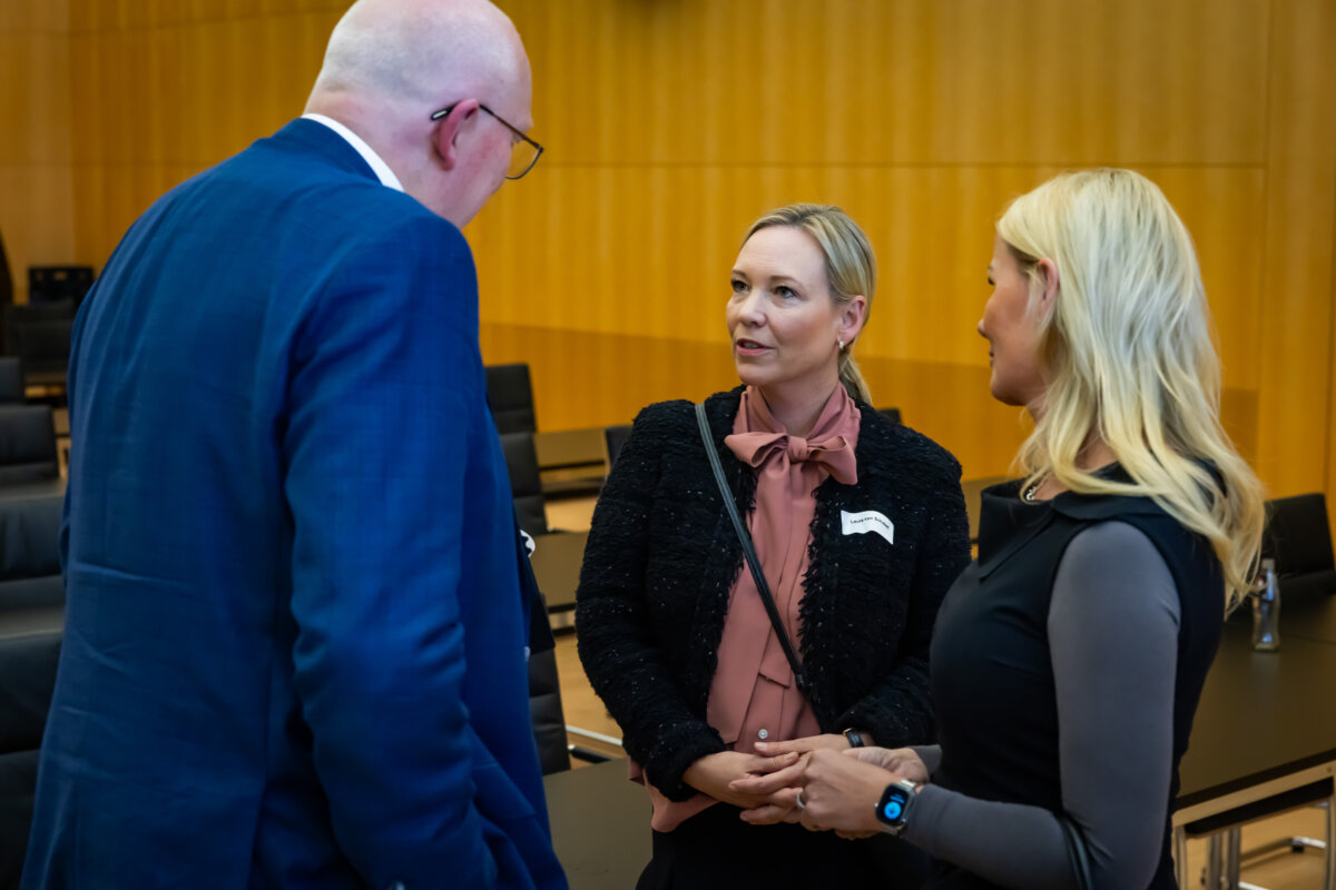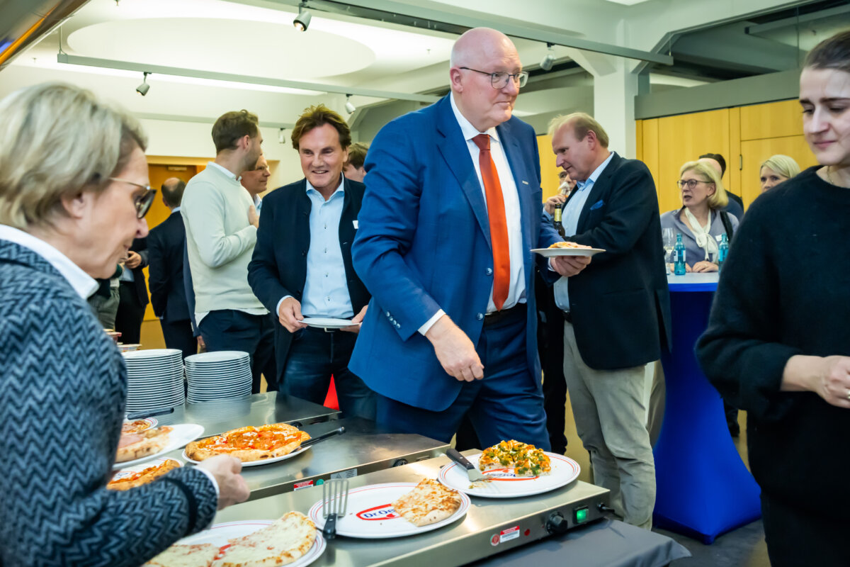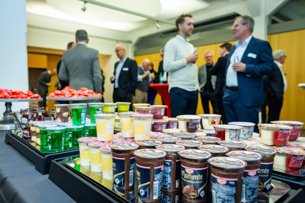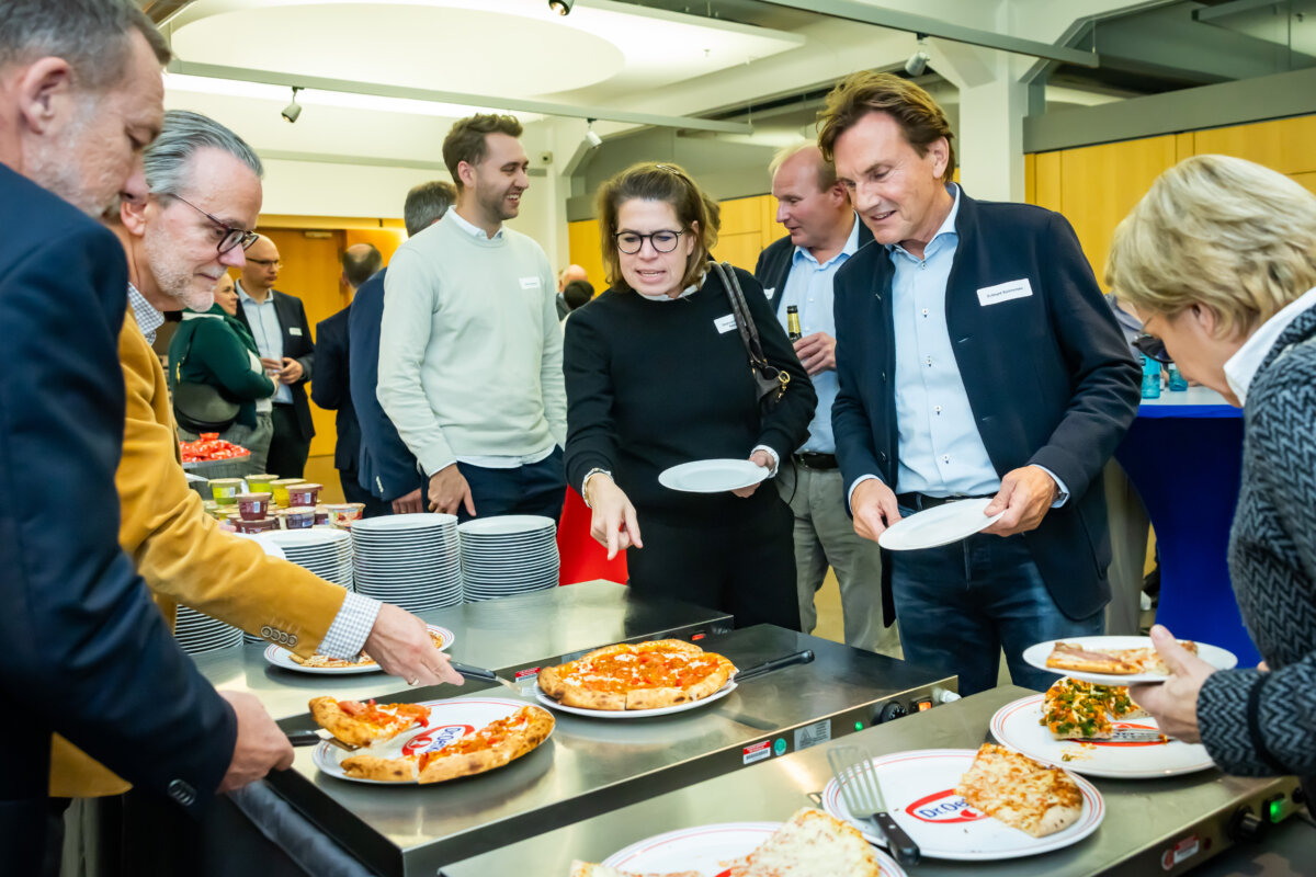 Im Anschluss an die Veranstaltung wurde die Gelegenheit, Fragen zu stellen, ausgiebig genutzt. Ein von Dr. Oetker offerierter Imbiss rundete den Abend mit vielen Gelegenheiten zum Diskutieren und Netzwerken ab.
