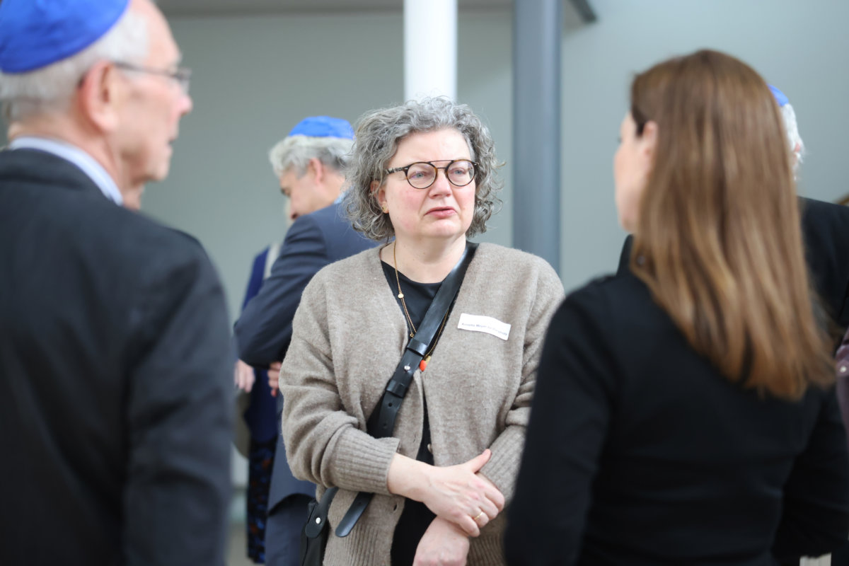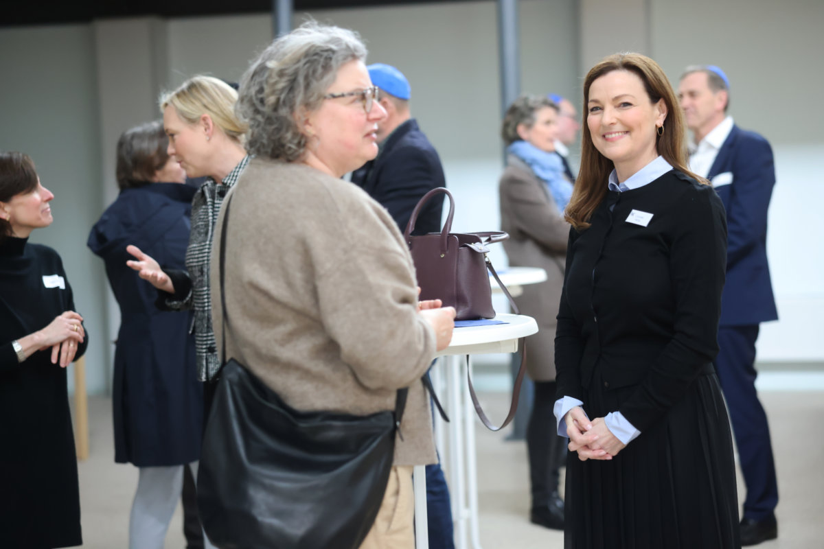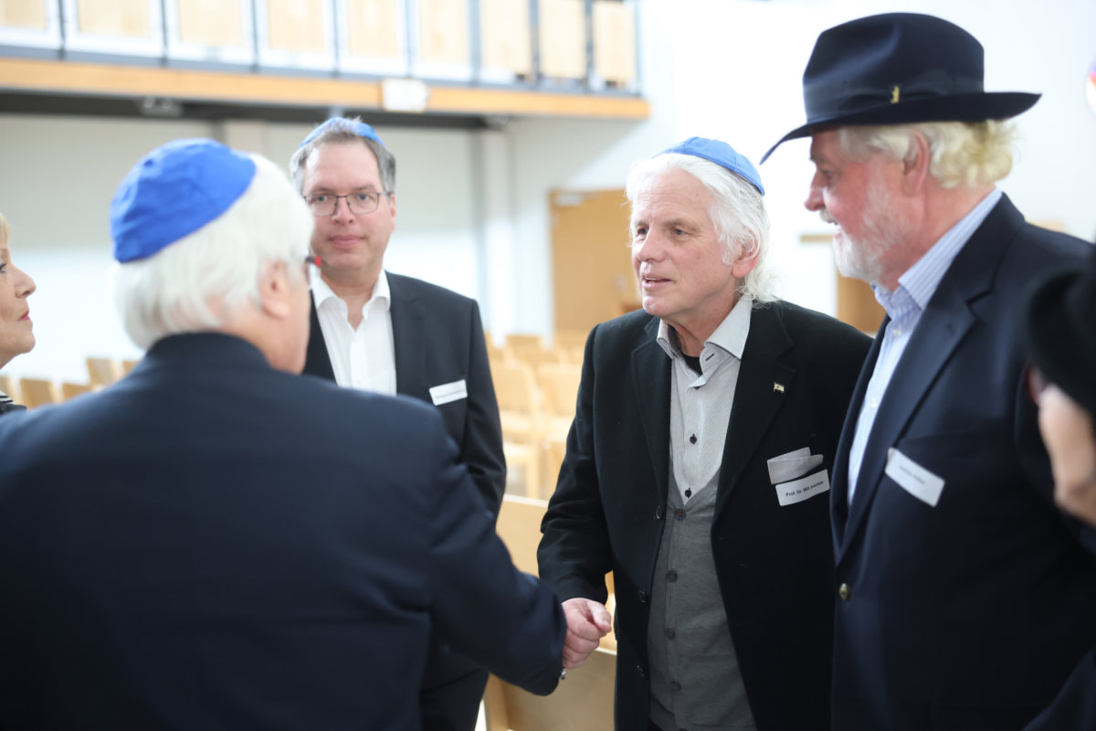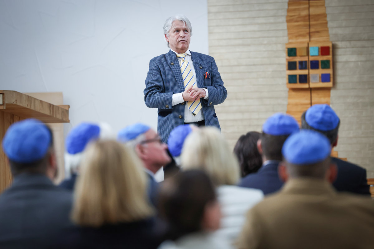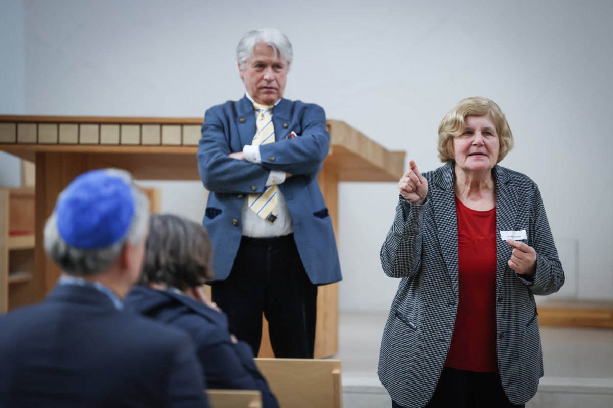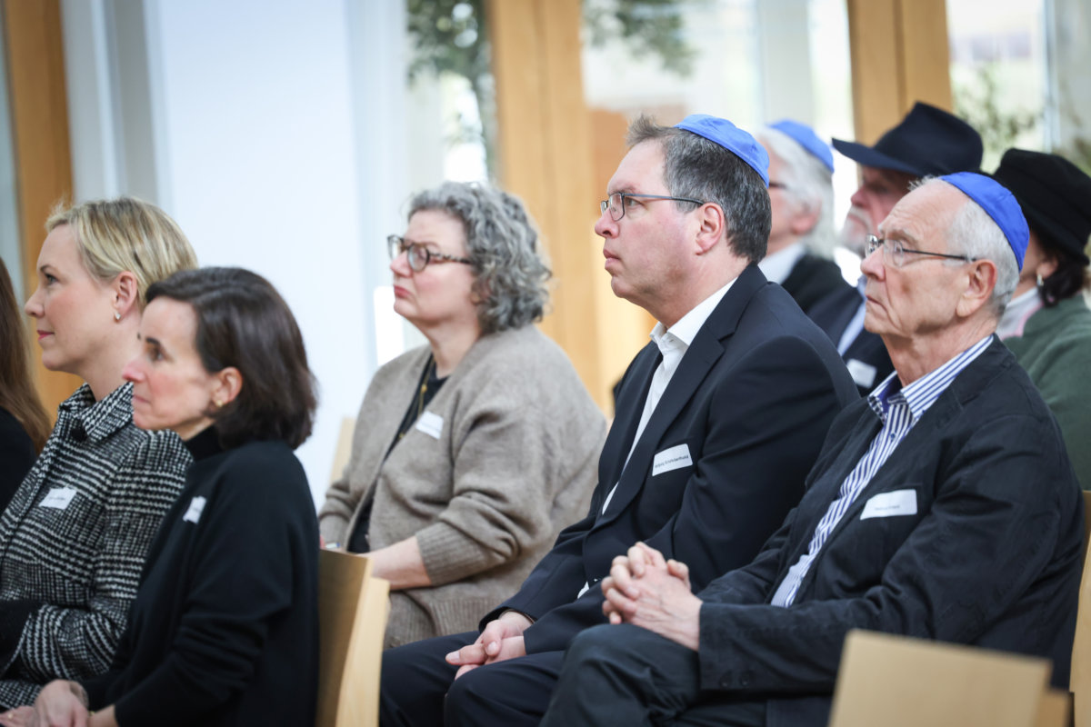 Vor dem abschließenden informellen Austausch bei koscherem Wein stellte Kantor Paul Yuval Adam die baulichen Veränderungen an der ehemaligen evangelischen Paul-Gerhardt-Kirche vor. Sie wurde 2008 zur Synagoge umgebaut. „Wir fühlen uns in der Nachbarschaft und Stadtgesellschaft gut aufgehoben“, erklärte Irith Michelsohn abschließend. Dennoch stehe die Synagoge zum Schutz vor antisemitischer Gewalt ständig unter Polizeischutz. Ein Besuch für Nicht-Gemeindemitglieder ist nur nach Anmeldung und Taschenkontrolle möglich. „Mein Wunsch für die Zukunft wäre mehr Normalität“, so die Gemeindevorsitzende. „Ich möchte gern einmal zu spät zum Gottesdienst kommen können, ohne vorher an der Tür klingeln zu müssen“.